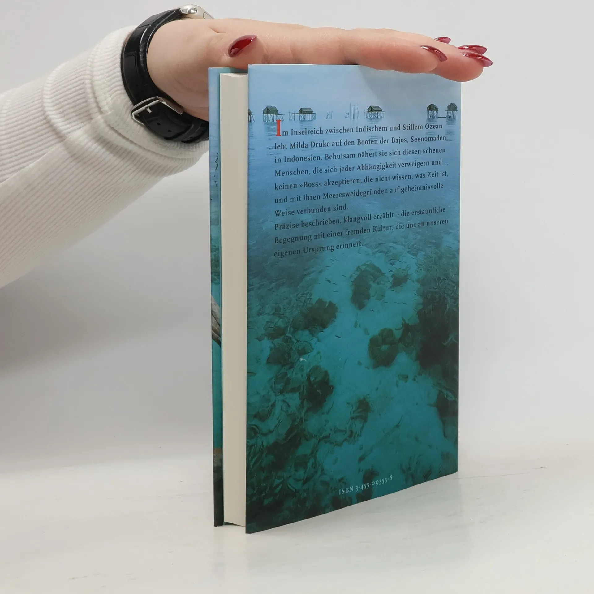 Im Inselreich zwischen Indischem und Stillem Ozean sucht Milda Drüke nach dem nomadischen Seevolk der Bajos - und entdeckt ihre eigene Nomadenseele. Eine erfolgreiche Frau gibt die Karriere auf und segelt einmal um die Erde. Als sie heimkehrt, beschließt sie, einen anderen Beruf zu ergreifen. Sie schreibt und fotografiert. Eines Tages hört Milda Drüke von Seenomaden, den Bajos in Südostasien, die in kleinen Hausbooten wohnen und über das Meer, ihre nassen Weidegründe, schweifen. Sie macht sich auf die Suche nach diesen Wassermenschen. In Indonesien angekommen, stellt sie fest, dass niemand weiß, wo sie sich aufhalten. Doch sie findet sie, lebt mit Bajo-Familien zusammen, die sie gastfreundlich aufnehmen, sie lernt ihre Kultur kennen. Und schließlich begegnet die Reisende dem Außenseiter Om Lahali, der seit vierzig Jahren allein auf seinem Boot lebt. Wochenlang darf sie ihn begleiten, und dabei macht sie Erfahrungen, die ihr Leben von Grund auf verändern. „Die Gabe der Seenomaden“ erzählt von der Begegnung einer Frau mit einer exotischen Welt und mit ihrer eigenen Ursprünglichkeit. „Plötzlich wusste ich“, schreibt die Autorin: „Ich hatte den Planeten umsegelt und mich auf die Suche nach den Seenomaden begeben, um mir wieder ähnlicher zu werden. Das Meer erinnerte mich an etwas. Deshalb war ich hier. Ich wollte mich erinnern.“