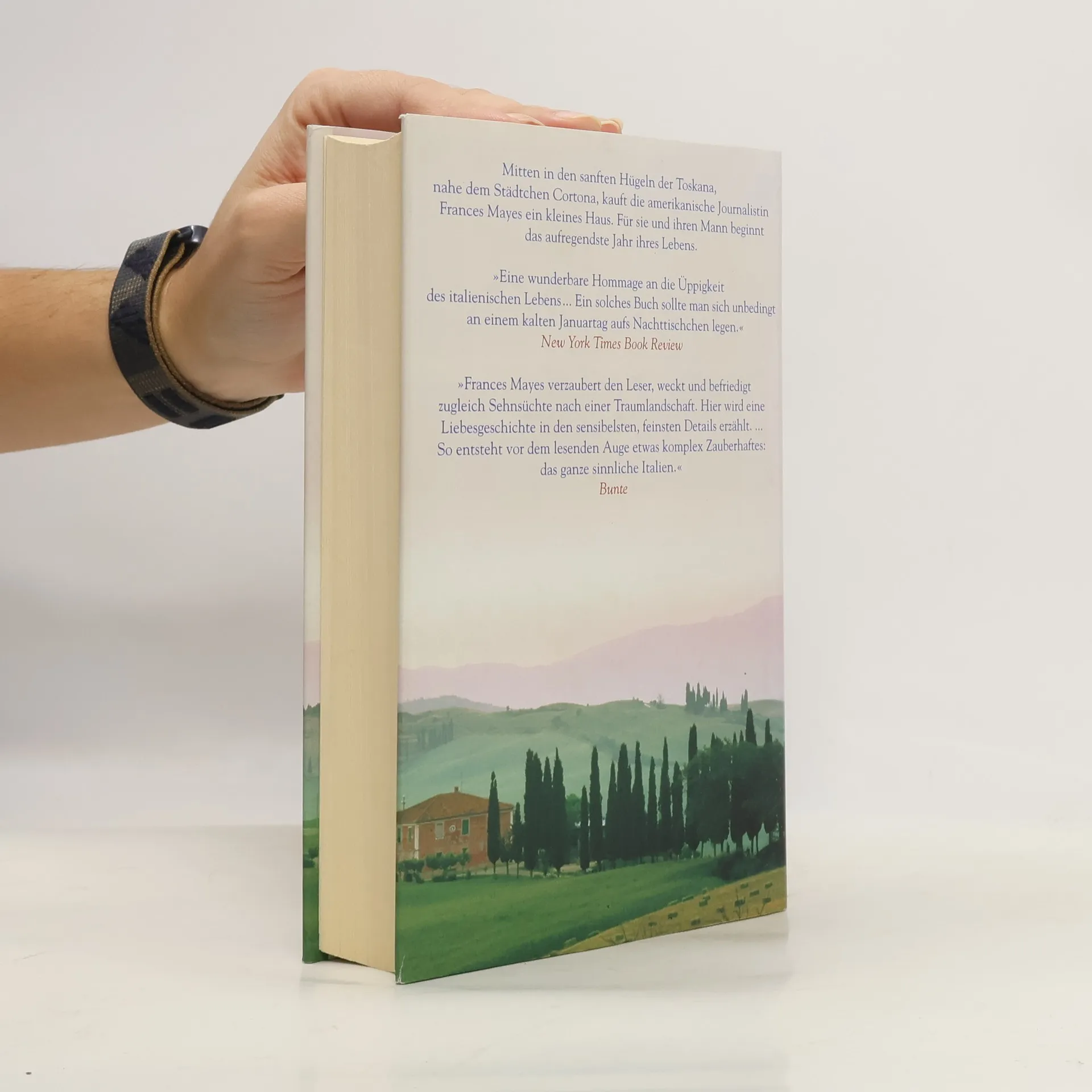 Mitten in den sanften Hügeln der Toskana nahe dem Städtchen Cortona kauft die amerikanische Journalistin, Reiseschriftstellerin und leidenschaftliche Köchin Frances Mayes ein kleines Landhaus. Für sie und ihren Mann beginnt das wohl aufregendste Jahr ihres Lebens