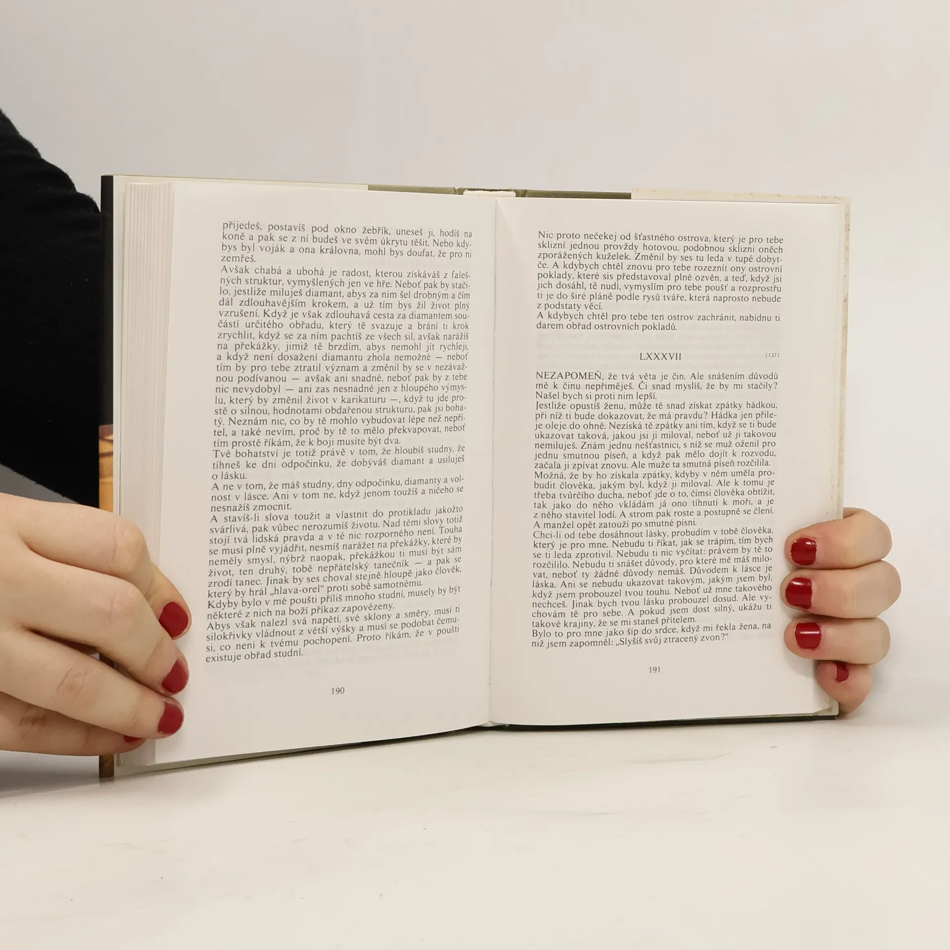Výbor z nedokončeného díla francouzského spisovatele, jež počalo vznikat jako poéma a postupně se stalo souhrnem meditací o lidském údělu, psaným stylem arabských litanií. Ve třinácti oddílech přináší zhruba dvacetinu této sumy životních názorů, zahrnuje však všechny velké náměty, na nichž autor lpěl - podstata člověka, poslání života, účel věcí, smysl oběti, svoboda, štěstí, spravedlnost, domov, práce, láska, přátelství, naděje. Je zde zachycena jeho vidina světa, ve kterém lidé tíhnou k sounáležitosti a k zvelebení země i sebe samých myšlenkou i činem.
