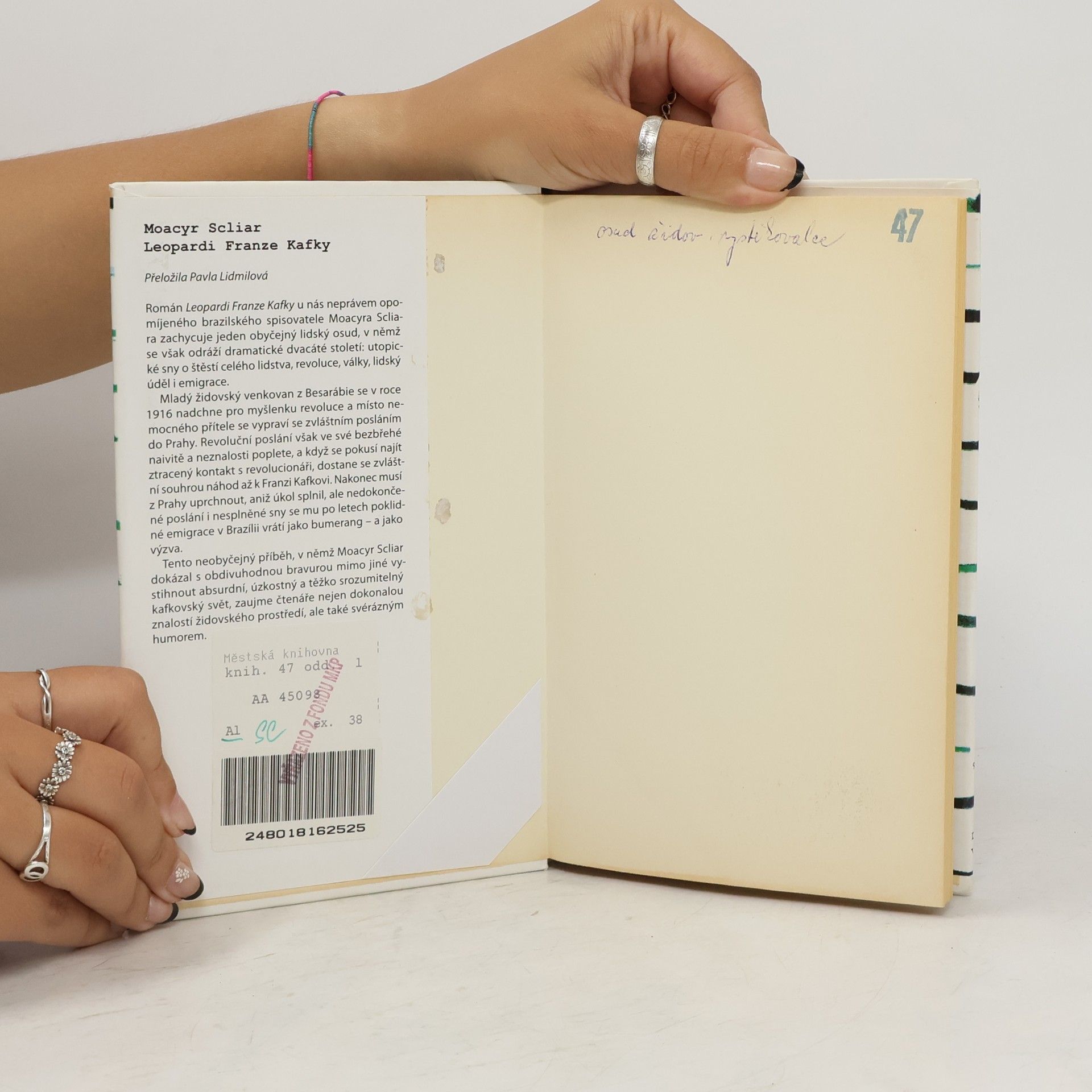 Autor s laskavým humorem líčí příběh mladého židovského venkovana, velkého stoupence Lva Trockého, který se místo nemocného přítele vypraví v roce 1916 se zvláštním posláním do Prahy. Souhrou náhod se zde setká s Franzem Kafkou, který mu věnuje část svého rukopisu. Našemu popletenému hrdinovi se revoluční poslání splnit nepodaří, ale Kafkův rukopis pečlivě opatruje. Na sklonku života jej věnuje svému nejmilejšímu synovci. Netuší, že složitý Kafkův text v kapse radikálního studenta bude považován za kódovanou zprávu, a on bude muset vynaložit všechno své úsilí, aby synovce zachránil před uvězněním. Na knize je zajímavé, že hlavní hrdina není fiktivní postava, ale skutečný autorův příbuzný, který do Brazílie přicestoval spolu s rodiči a sourozenci, když v Rusku vypukla občanská válka. Autor tudíž prostředí evropských Židů dobře zná a dovede ve své knize čtenáře rozesmát i dojmout.
