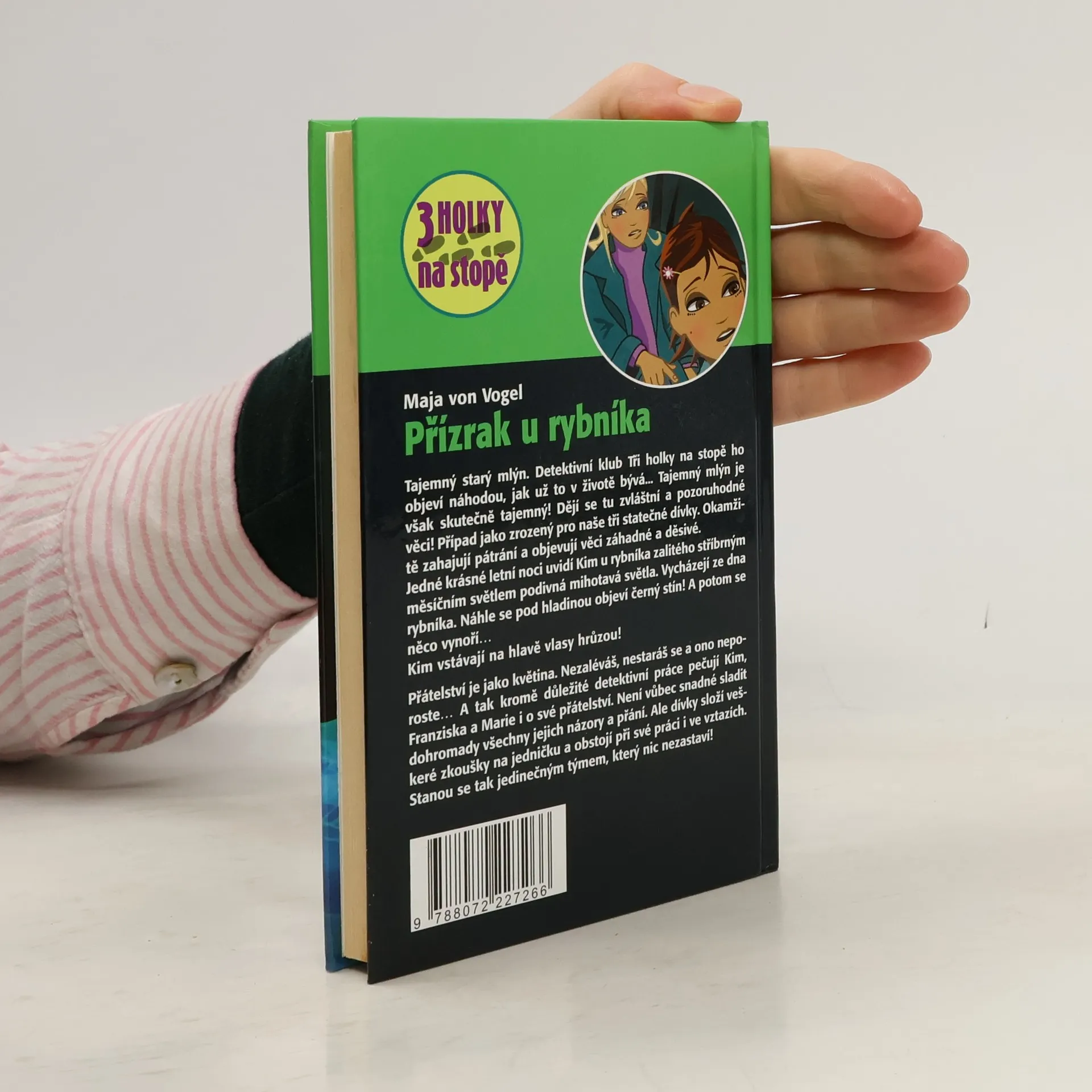 Tajemný starý mlýn. Detektivní klub Tři holky na stopě ho objeví náhodou, jak už to v životě bývá... Tajemný mlýn je však skutečně tajemný! Dějí se tu zvláštní a pozoruhodné věci! Případ jako zrozený pro naše tři statečné dívky. Okamžitě zahajují pátrání a objevují věci záhadné a děsivé. Jedné krásné letní noci uvidí Kim u rybníka zalitého stříbrným měsíčním světlem podivná mihotavá světla. Vycházejí ze dna rybníka. Náhle se pod hladinou objeví černý stín! A potom se něco vynoří, Kim vstávají na hlavu vlasy hrůzou! Přátelství je jako květina. Nezaléváš, nestaráš se a ono neporoste. A tak kromě důležité detektivní práce pečují Kim, Franziska a Marie i o své přátelství. Není vůbec snadné sladit dohromady všechny jejich názory a přání. Ale dívky složí veškeré zkoušky na jedničku a obstojí při své práci i ve vztazích. Stanou se tak jedinečným týmem, který nic nezastaví!