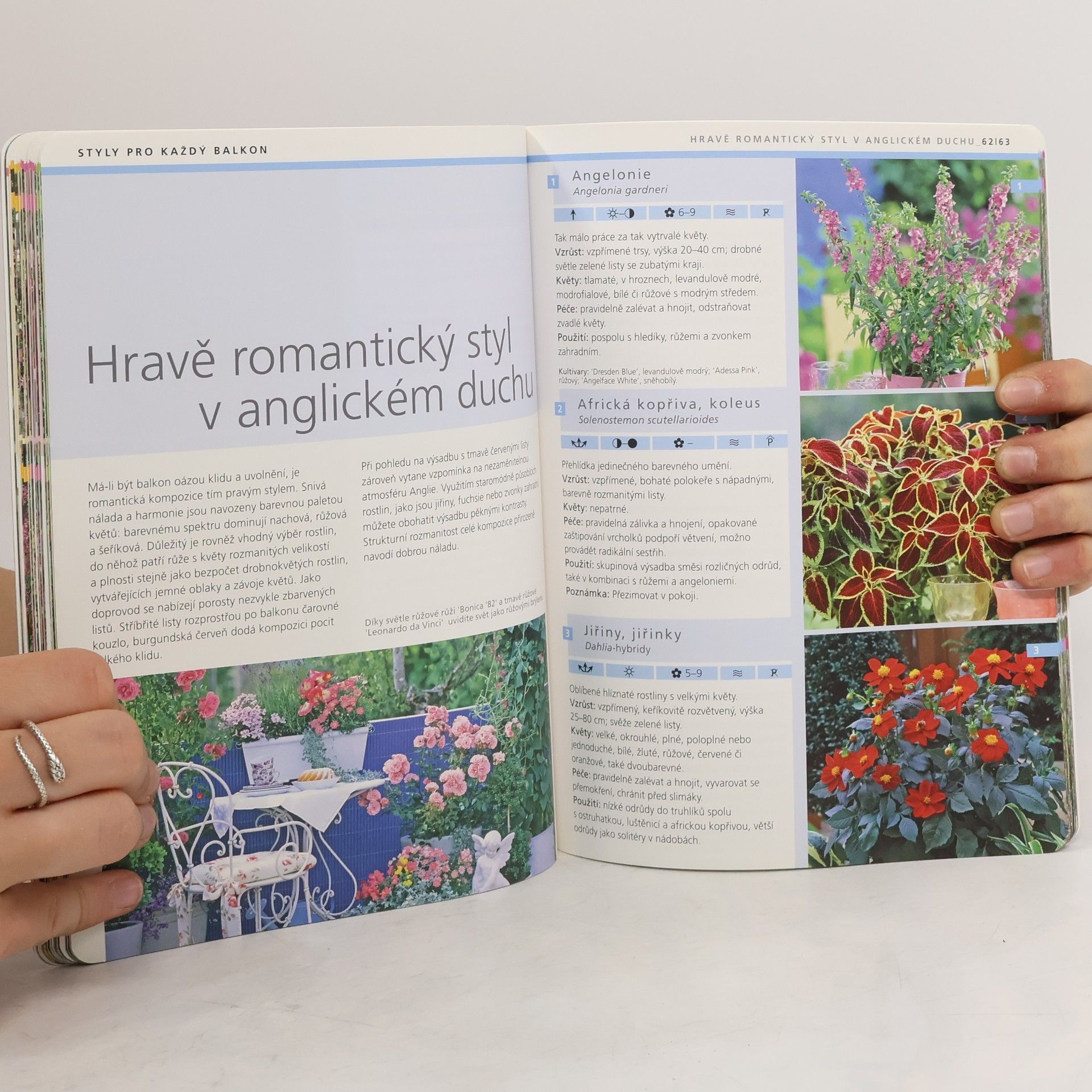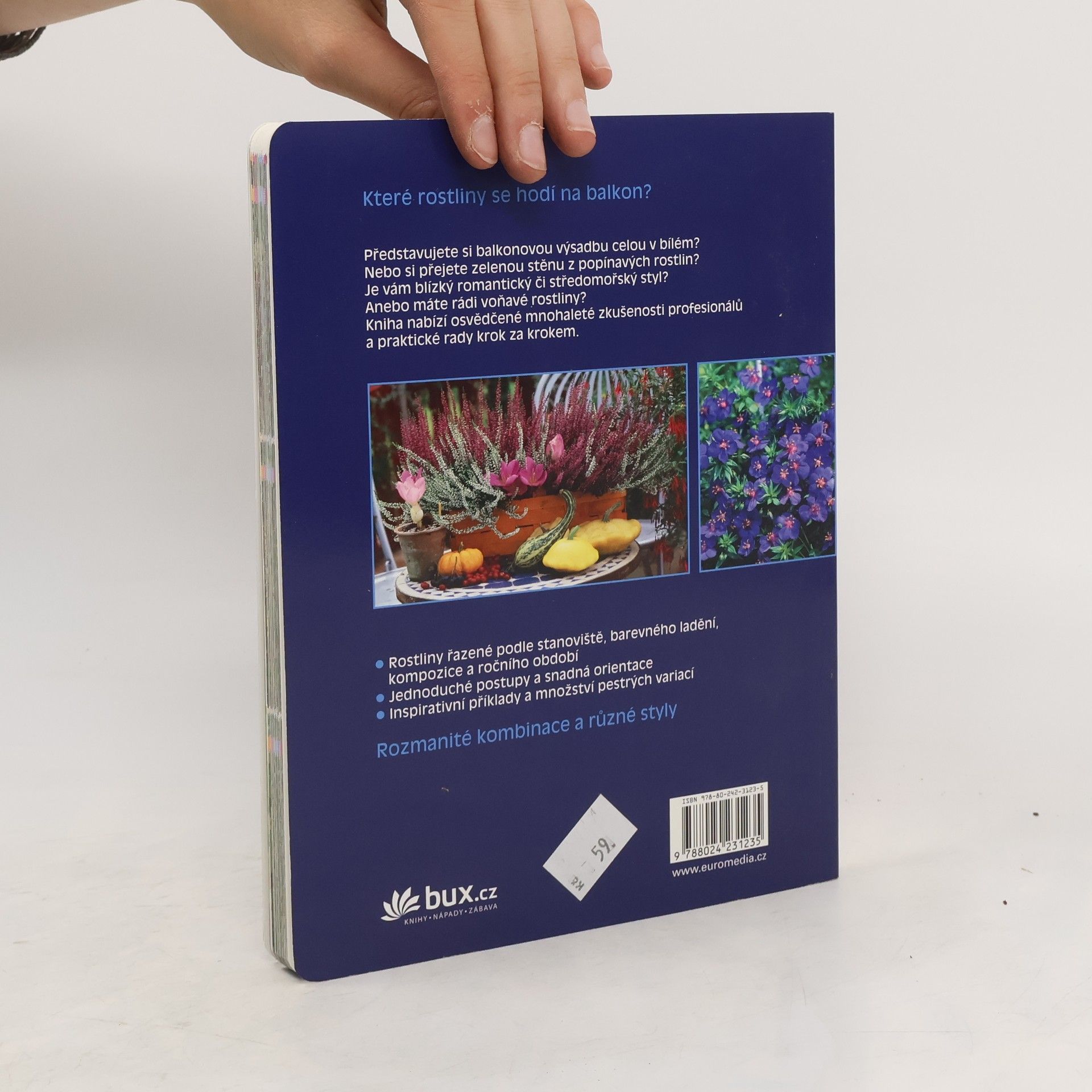 Představujete si balkonovou výsadbu celou v bílém? Nebo si přejete zelenou stěnu z popínavých rostlin? Je vám blízký romantický či středomořský styl? Anebo máte rádi voňavé rostliny? Kniha nabízí osvědčené mnohaleté zkušenosti profesionálů, jednoduché postupy a množství pestrých variací. Rostliny jsou řazené podle stanoviště, barevného ladění, kompozice a ročního období.