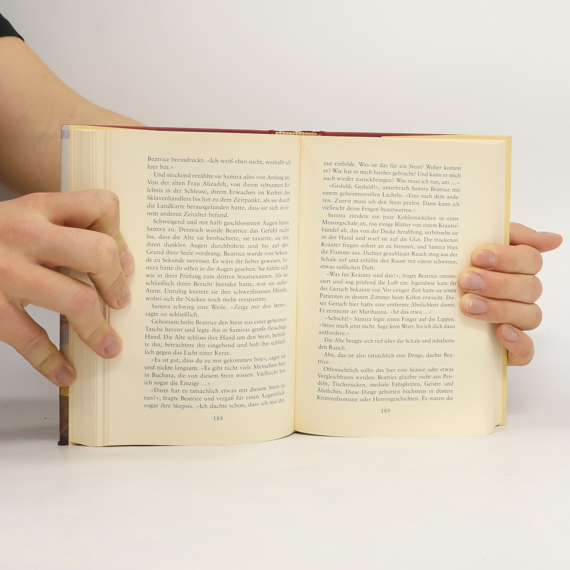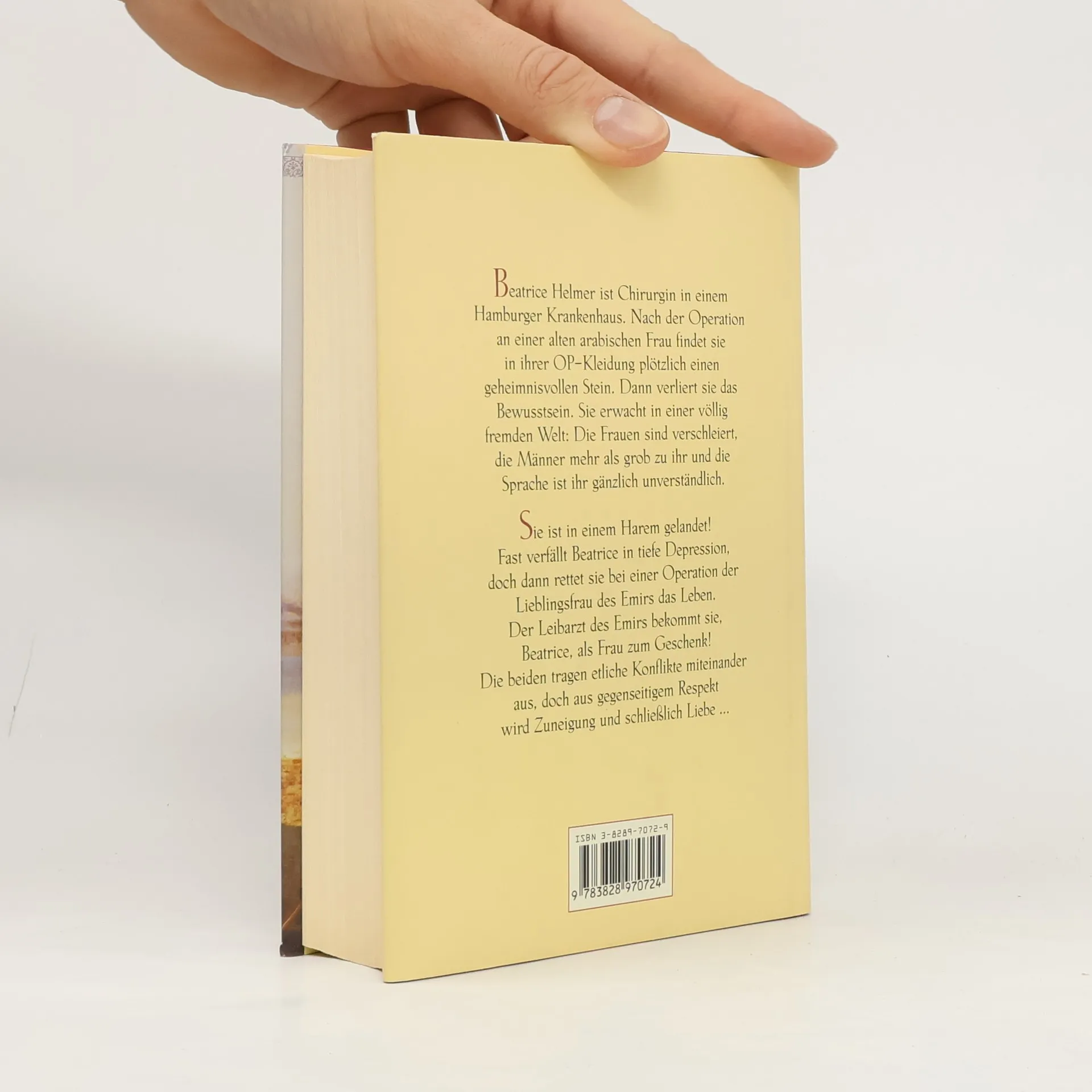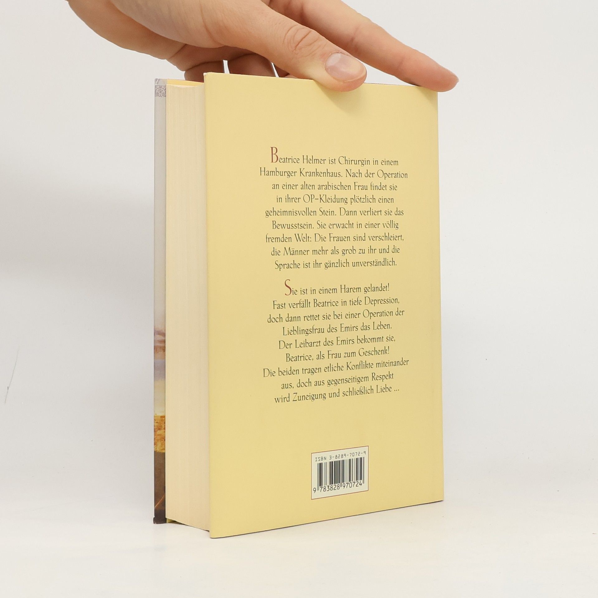 Beatrice Helmer ist Chirurgin in einem Hamburger Krankenhaus. Nach der Operation an einer alten arabischen Frau findet sie in ihrem Kittel plötzlich einen geheimnisvollen Stein. Dann verliert sie das Bewusstsein. Sie erwacht in einer völlig fremden Welt: Die Frauen sind verschleiert, die Männer mehr als grob zu ihr, und die Sprache ist ihr gänzlich unverständlich. Ist sie in einem Harem gelandet? Fast verfällt Beatrice in tiefe Depression, doch dann rettet sie bei einer Operation der Lieblingsfrau des Emirs das Leben...