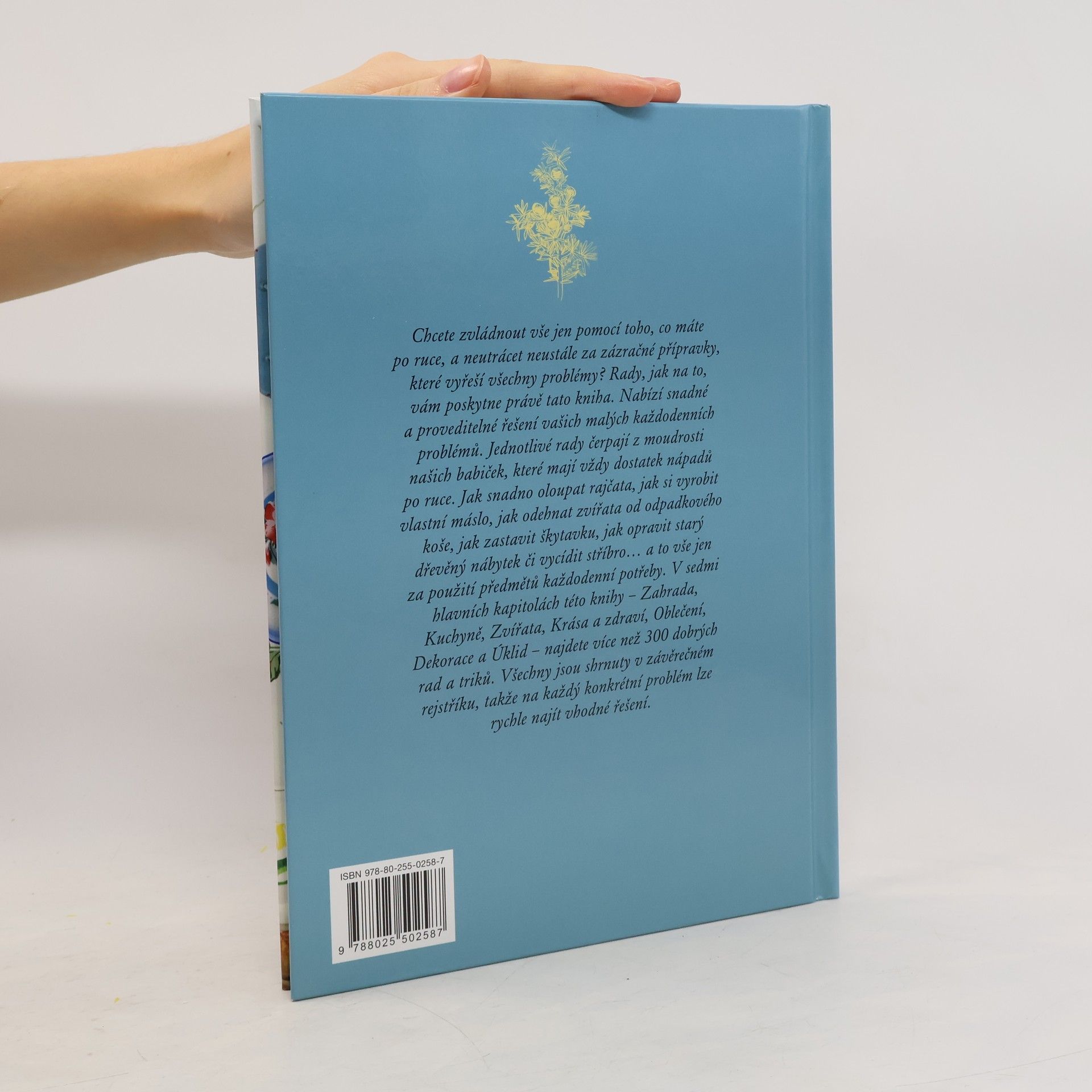 Domácnost, zahrada, krása a zdraví Jak zachránit přesolenou omáčku, vyčistit oblečení, zastavit škytavku nebo se zbavit plísně? Tato kniha přináší nespočet užitečných rad, nápadů a moudrostí našich babiček, které si dokázaly poradit i bez dnešních moderních výdobytků. V sedmi kapitolách věnovaných zahradě, kuchyni, domácím mazlíčkům, kráse a zdraví, oblečení, dekoracím a úklidu čtenář nalezne více než 300 dobrých rad a triků na zvládnutí běžných nesnází. - více než 300 rad a triků - uspořádání do tematických kapitol - přehledné grafické zpracování pro rychlé nalezení konkrétních rad - stručné a srozumitelné návody na řešení běžných problémů - přehledný rejstřík řazený tematicky