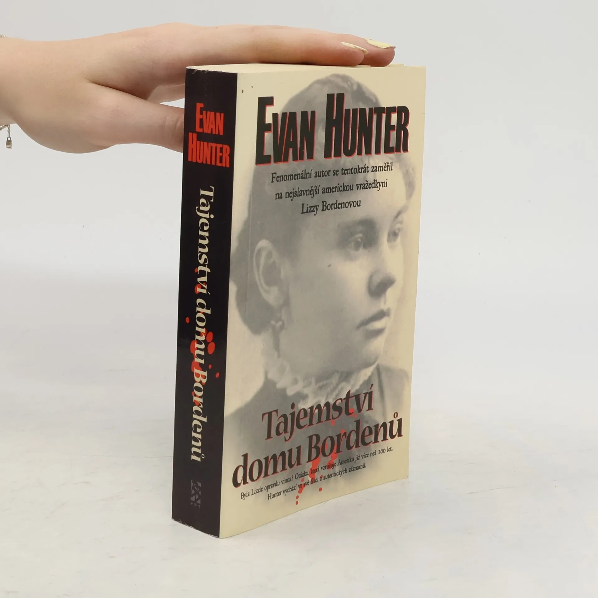 Chladnokrevná vražedkyně, nebo oběť chvilkového zatemnění mysli? Ačkoliv od událostí popisovaných v této knize uplynulo více jak sto let, je Lizzie Bordenová připomínána jako jedna z nejhanebnějších vražedkyň Ameriky. Souzená pro vraždy otce a macechy, avšak prohlášena za nevinnou, její jméno neslo stigma hanby ještě dlouho po její smrti v roce 1927. Jméno skutečného vraha nebylo nikdy odhaleno. V tomto strhujícím románu proplétá Evan Hunter zručně fakta s fikcí. Kniha končí zarážejícím, avšak zcela věrohodným vysvětlením celé záhady. Byla Lizzie Bordenová zchytralou vražedkyní nesprávně osvobozenou poté, co byla obviněna z dvojnásobné vraždy? Skrývala pochybné tajemství, které by mohlo být jinak odhaleno? Byly vraždy jediným řešením jejího dilematu? Provokativní spekulace ve věci jednoho z nejproslulejších zločinů spáchaných v Americe.