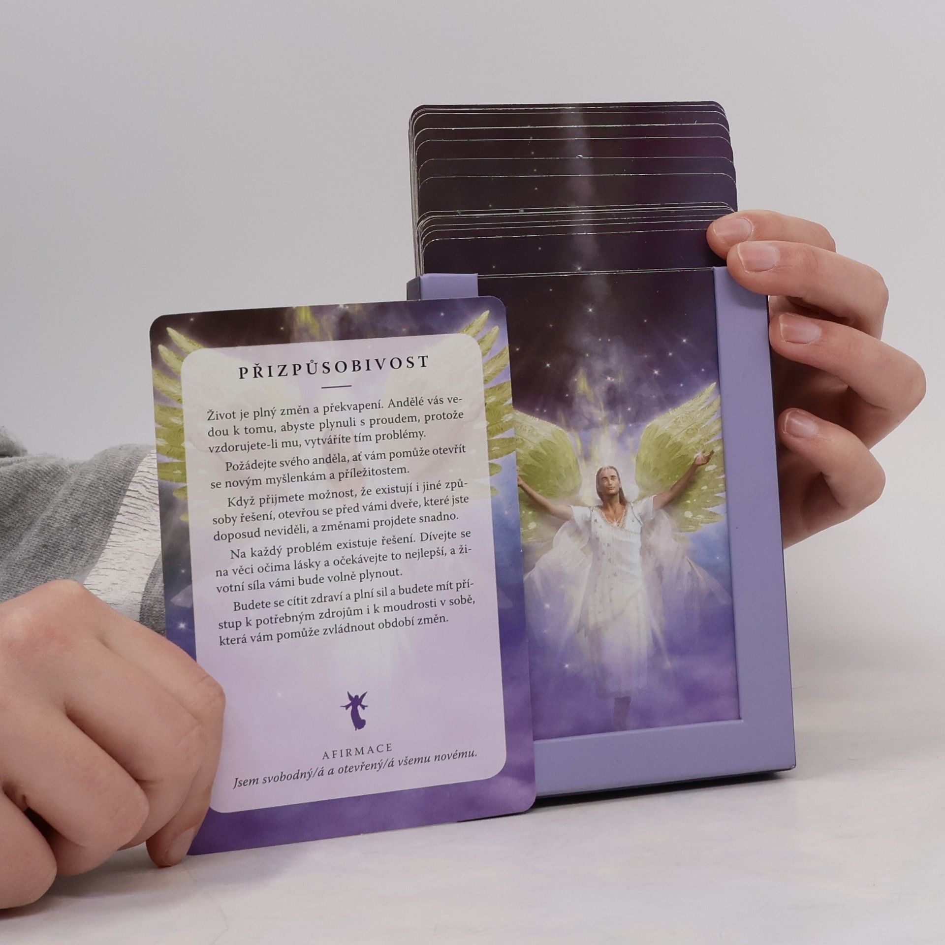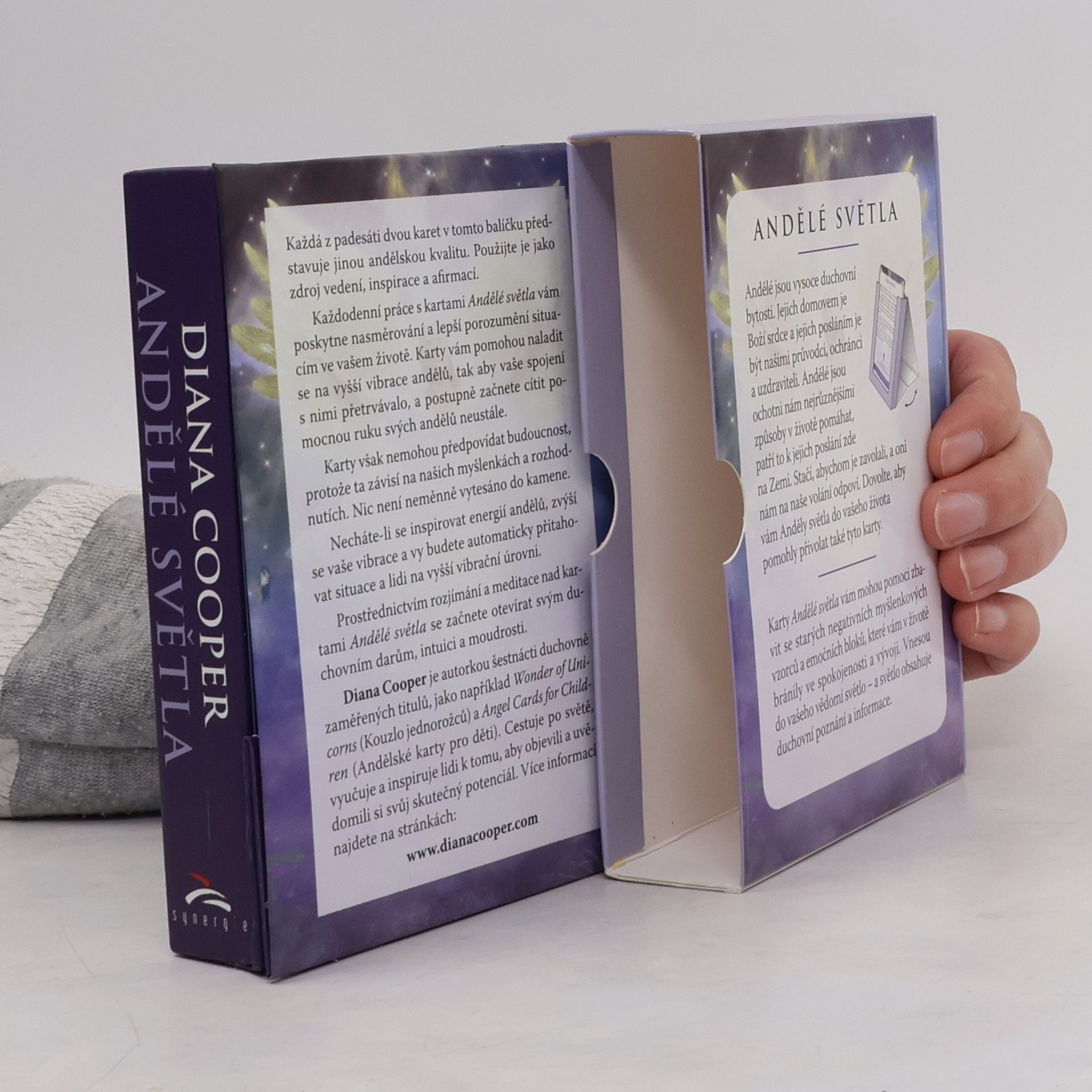 Andělé jsou vysoce duchovní bytosti. Jejich domovem je Boží srdce a jejich posláním je být našimi průvodci, ochránci a uzdraviteli. Andělé jsou ochotni nám nejrůznějšími způsoby v životě pomáhat, patří to k jejich poslání zde na Zemi. Stačí, abychom je zavolali, a oni nám na naše volání odpoví. Dovolte, aby vám Anděly světla do vašeho života pomohly přivolat také tyto karty. Karty Andělé světla vám mohou pomoci zbavit se starých negativních myšlenkových vzorců a emočních bloků, které vám v životě bránily ve spokojenosti a vývoji. Vnesou do vašeho vědomí světlo – a světlo obsahuje duchovní poznání a informace.