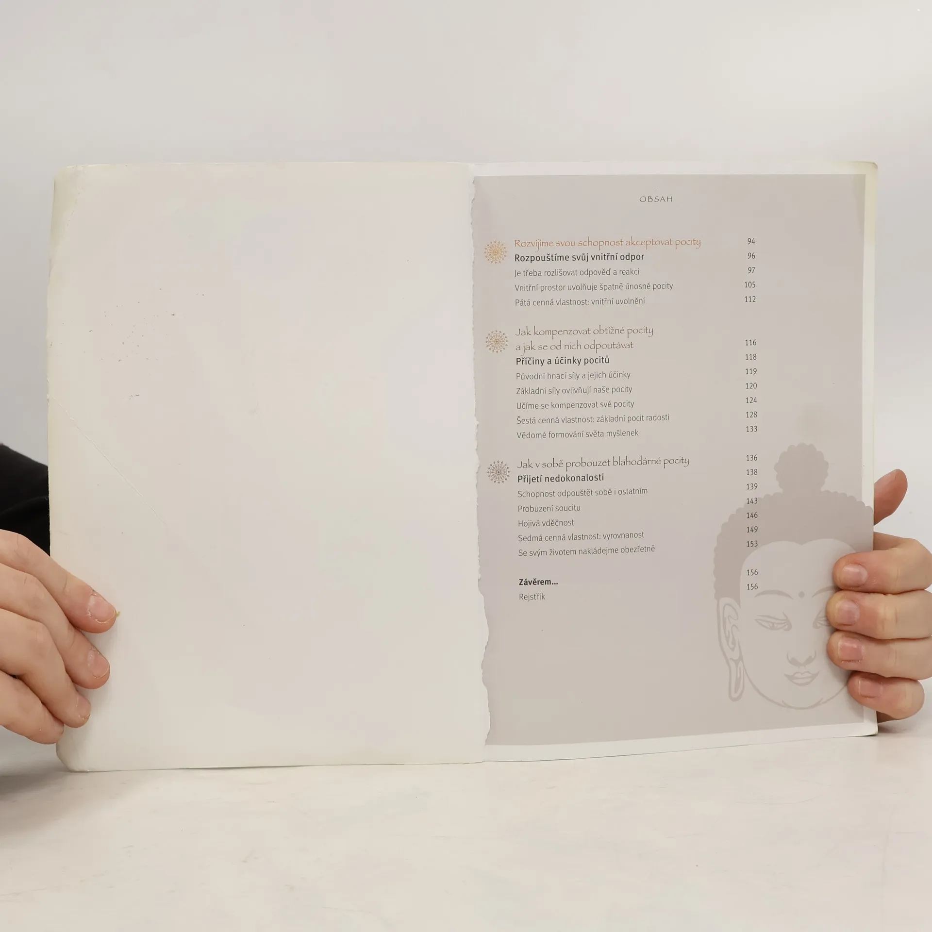 Pocity ovlivňují náš život než cokoliv jiného. Propůjčí nám křídla, ale mohou nás také dovést až na pokraj zoufalství. Často cítíme, že tváří v tvář jejich moci nad námi jsme zcela bezmocní a vydaní na milost a nemilost. To věděl i Buddha, a proto nás učil, jak se můžeme z jejich moci vysvobodit. S pomocí takzvaných sedmi cenných vlastností - pozornosti, přiměřeného úsilí, zkoumající mysli, radosti, soustředění, vnitřního uvolnění a vyrovnanosti - budeme schopni stále přesněji zkoumat a vnímat svět svých pocitů. A čím lépe svým pocitům porozumíme, tím budeme v kontaktu s nimi svobodnější. Místo toho, abychom se pachtili za příjemnými pocity a před těmi nepříjemnými utíkali, budeme se raději učit své pocity vyrovnaně akceptovat, odpoutávat se od obtížných pocitů a probouzet v sobě pocity, které působí prospěšně.