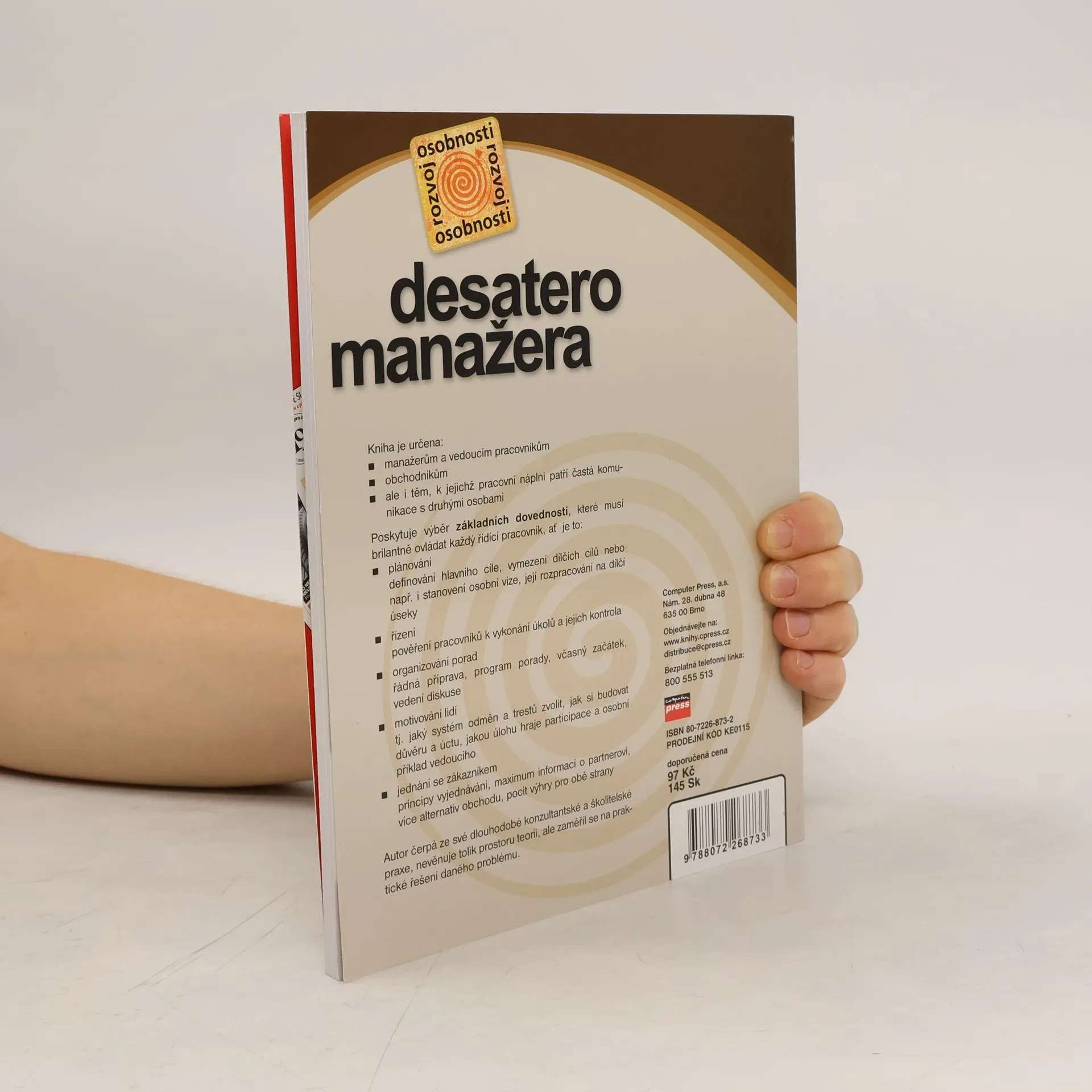 Kniha je určena: manažerům a vedoucím pracovníkům obchodníkům ale i těm, k jejichž pracovní náplni patří častá komunikace s druhými osobami Poskytuje výběr základních dovedností, které musí brilantně ovládat každý řídící pracovník, ať je to: plánování definování hlavního cíle, vymezení dílčích cílů nebo např. i stanovení osobní vize, její rozpracování na dílčí úseky řízení pověření pracovníků k vykonání úkolů a jejich kontrola organizování porad řádná příprava, program porady, včasný začátek, vedení diskuse motivování lidí tj. jaký systém odměn a trestů zvolit, jak si budovat důvěru a úctu, jakou úlohu hraje participace a osobní příklad vedoucího jednání se zákazníkem principy vyjednávání, maximum informací o partnerovi, více alternativ obchodu, pocit výhry pro obě strany Autor čerpá ze své dlouhodobé konzultantské a školitelské praxe, nevěnuje tolik prostoru teorii, ale zaměřil se na praktické řešení daného problému.