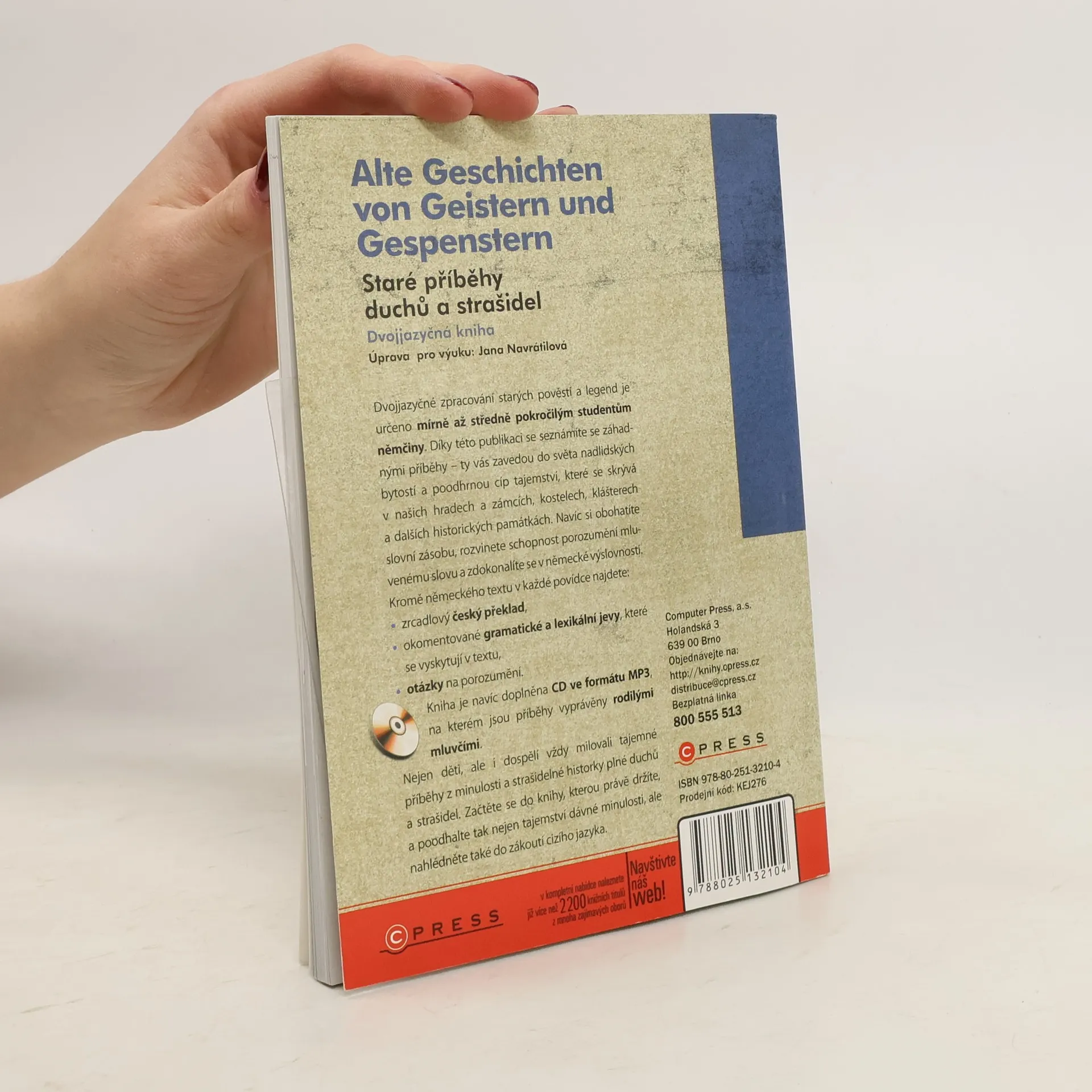 Dvojjazyčné zpracování starých pověstí a legend je určeno mírně až středně pokročilým studentům němčiny. Díky této publikaci se seznámíte se záhadnými příběhy – ty vás zavedou do světa nadlidských bytostí a poodhrnou cíp tajemství, které se skrývá v našich hradech a zámcích, kostelech, klášterech a dalších historických památkách. Navíc si obohatíte slovní zásobu, rozvinete schopnost porozumění mluvenému slovu a zdokonalíte se v německé výslovnosti.