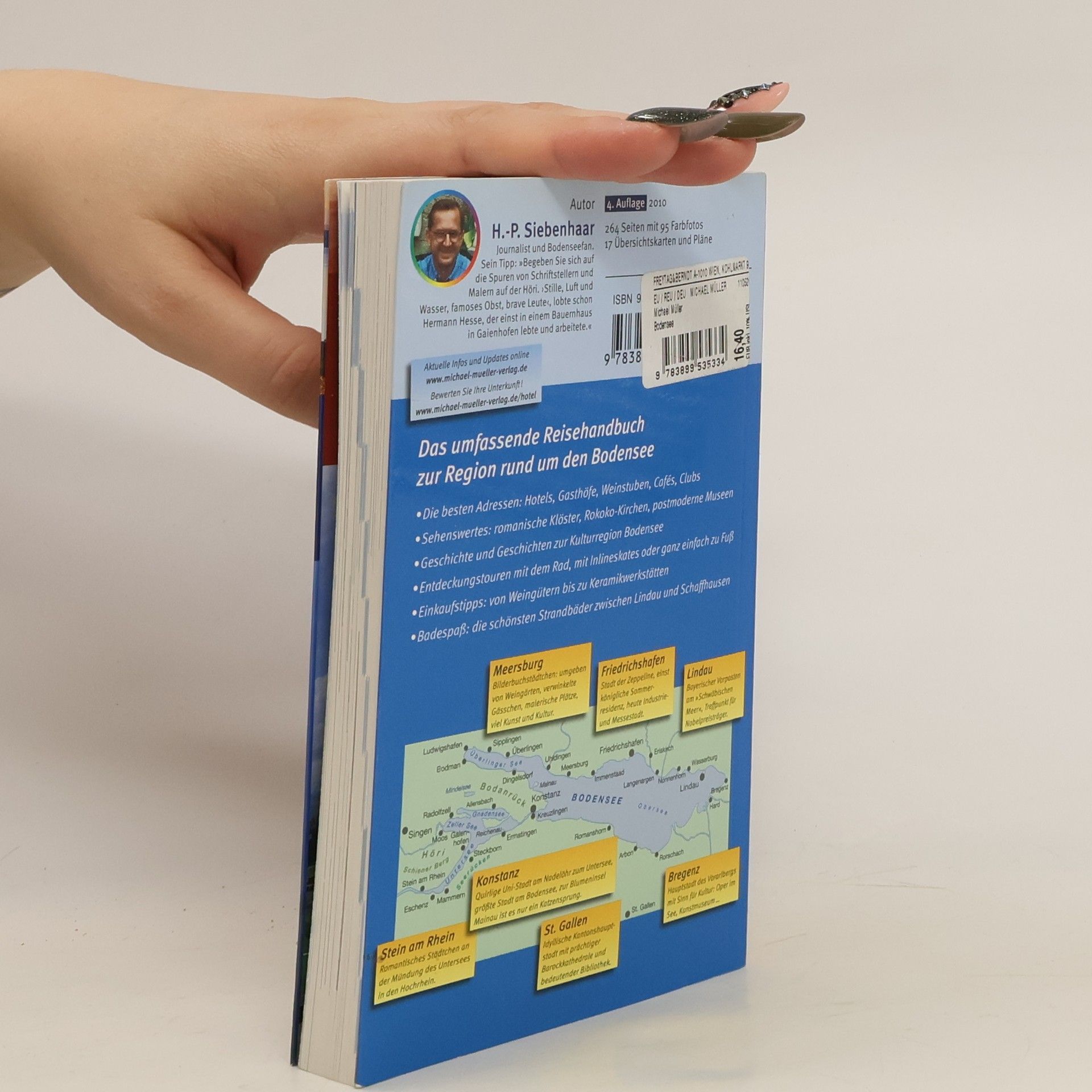 Der Bodensee ist ein äußerst beliebtes Reiseziel, das sieht man schon daran, dass gleichzeitig Titel zu dieser Region in 3 der beliebtesten Grundbestandsreihen erscheinen (vgl. den Baedeker "Bodensee" und das DuMontReisetaschenbuch von Gerhard Fischer in dieser Nr.). Der attraktive und übersichtliche Band aus der MichaelMüllerReihe, die sich mit ihren detaillierten Informationen an Individualreisende richtet, war in der letzten Auflage (BA 11/02) von Grund auf auch optisch überarbeitet worden. Die vorliegende Auflage wurde dagegen "nur" in den reisepraktischen Angaben gründlich aktualisiert. Auflagen vor 2002 löschen, die Ausgabe von 2002 kann auslaufen. Diese aktuelle Ausgabe sollte möglichst neben den beiden oben genannten Titeln angeboten werden. (1)