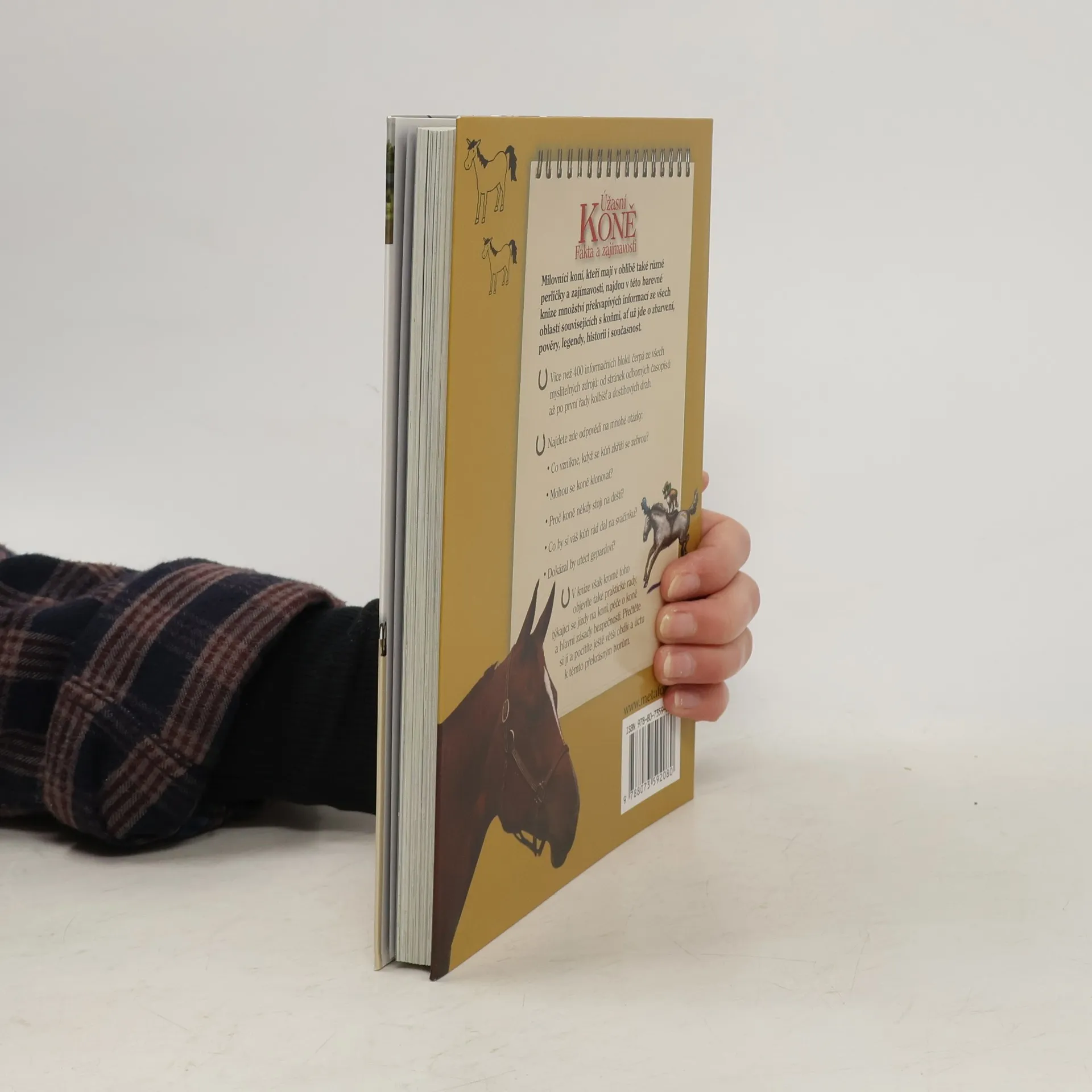 Úžasní koně - Fakta a zajímavosti Ilustrovaný průvodce obdivuhodným světem koní… Milovníci koní, kteří mají v oblibě také různé perličky a zajímavosti, najdou v této barevné knize množství překvapivých informací ze všech oblastí souvisejících s koňmi, ať už jde o zbarvení, pověry, legendy, historii i současnost. Více než 400 informačních bloků čerpá ze všech myslitelných zdrojů: od stránek odborných časopisů až po první řady kolbišť a dostihových drah. Najdete zde odpovědi na mnohé neobvyklé otázky, ale také praktické rady, týkající se jízdy na koni, péče o koně a hlavní zásady bezpečnosti.