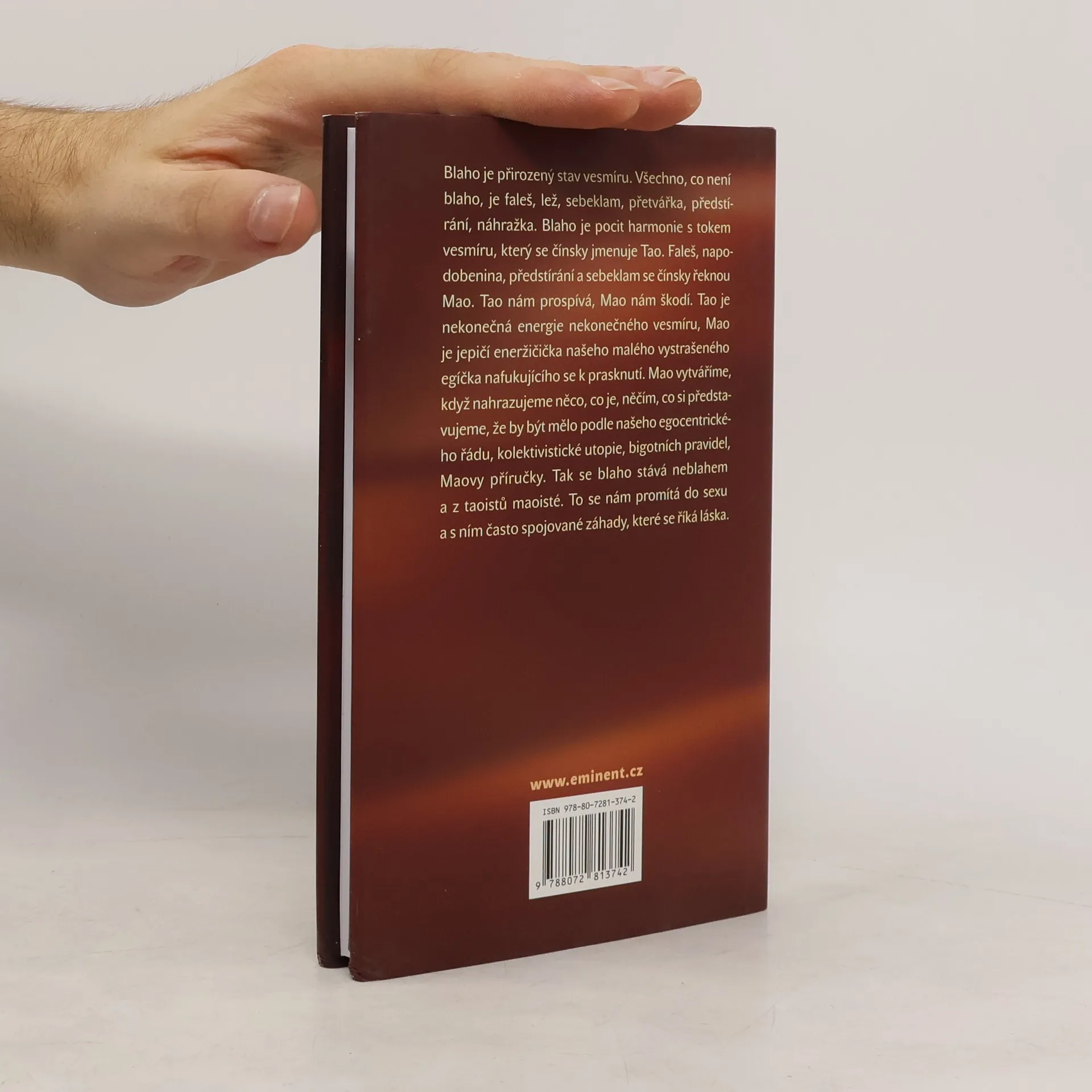 Blaho je přirozený stav vesmíru. Všechno, co není blaho, je faleš, lež, sebeklam, přetvářka, předstírání, náhražka. Blaho je pocit harmonie s tokem vesmíru, který se čínsky jmenuje Tao. Faleš, napodobenina, předstírání a sebeklam se čínsky řeknou Mao. Tao nám prospívá, Mao nám škodí. Tao je nekonečná energie nekonečného vesmíru, Mao je jepičí eneržičička našeho malého vystrašeného egíčka nafukujícího se k prasknutí. Mao vytváříme, když nahrazujeme něco, co je, něčím, co si představujeme, že by být mělo podle našeho egocentrického řádu, kolektivistické utopie, bigotních pravidel, Maovy příručky. Tak se blaho stává neblahem a z taoistů maoisté. To se nám promítá do sexu a s ním často spojované záhady, které se říká láska.