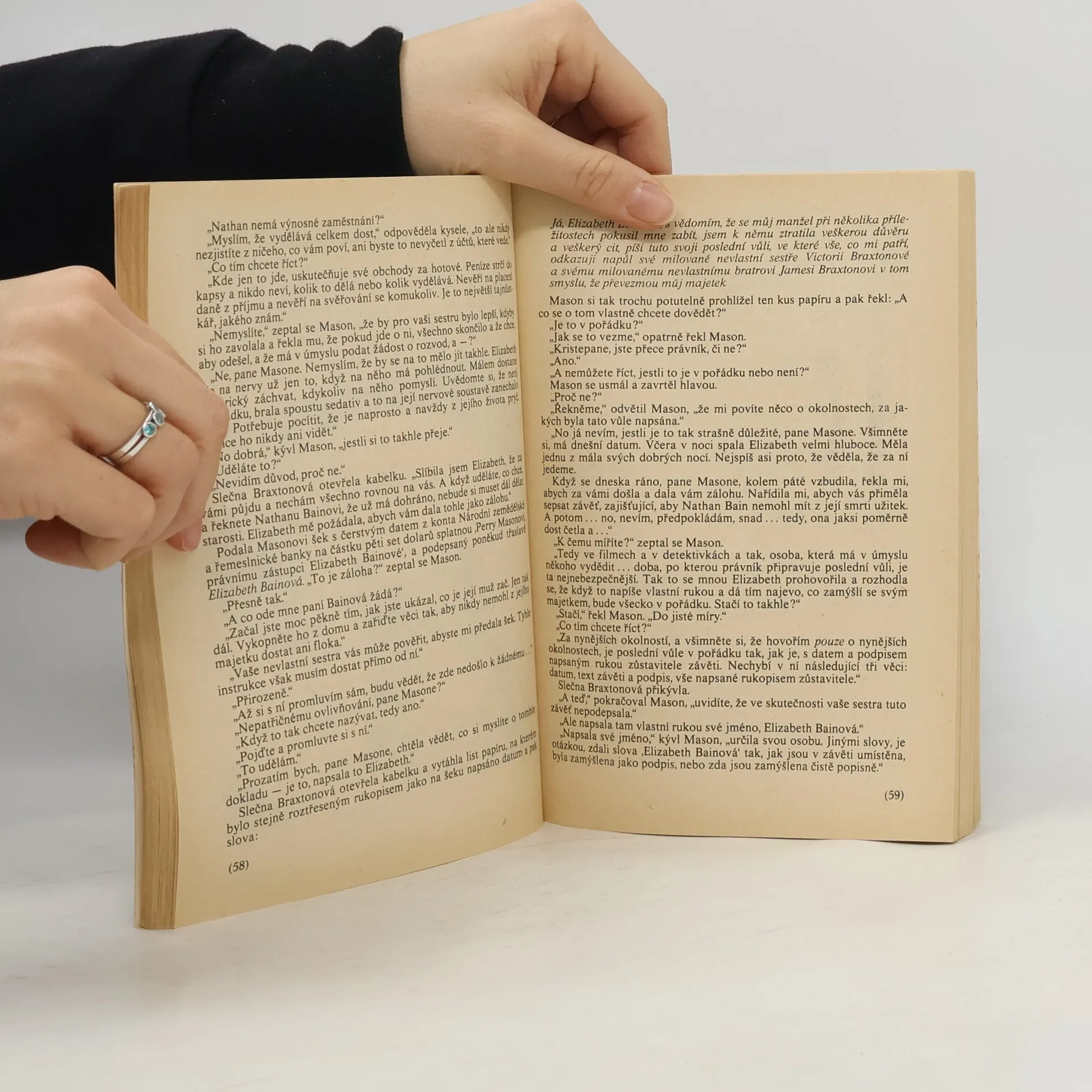Detektivní román, v němž Perry Mason se spolupracovníky řeší případ ukradených šperků a v soudní síni obhajuje klientku obviněnou z falšování závěti a z vraždy a odhaluje další zločiny kolem šperků i závěti.