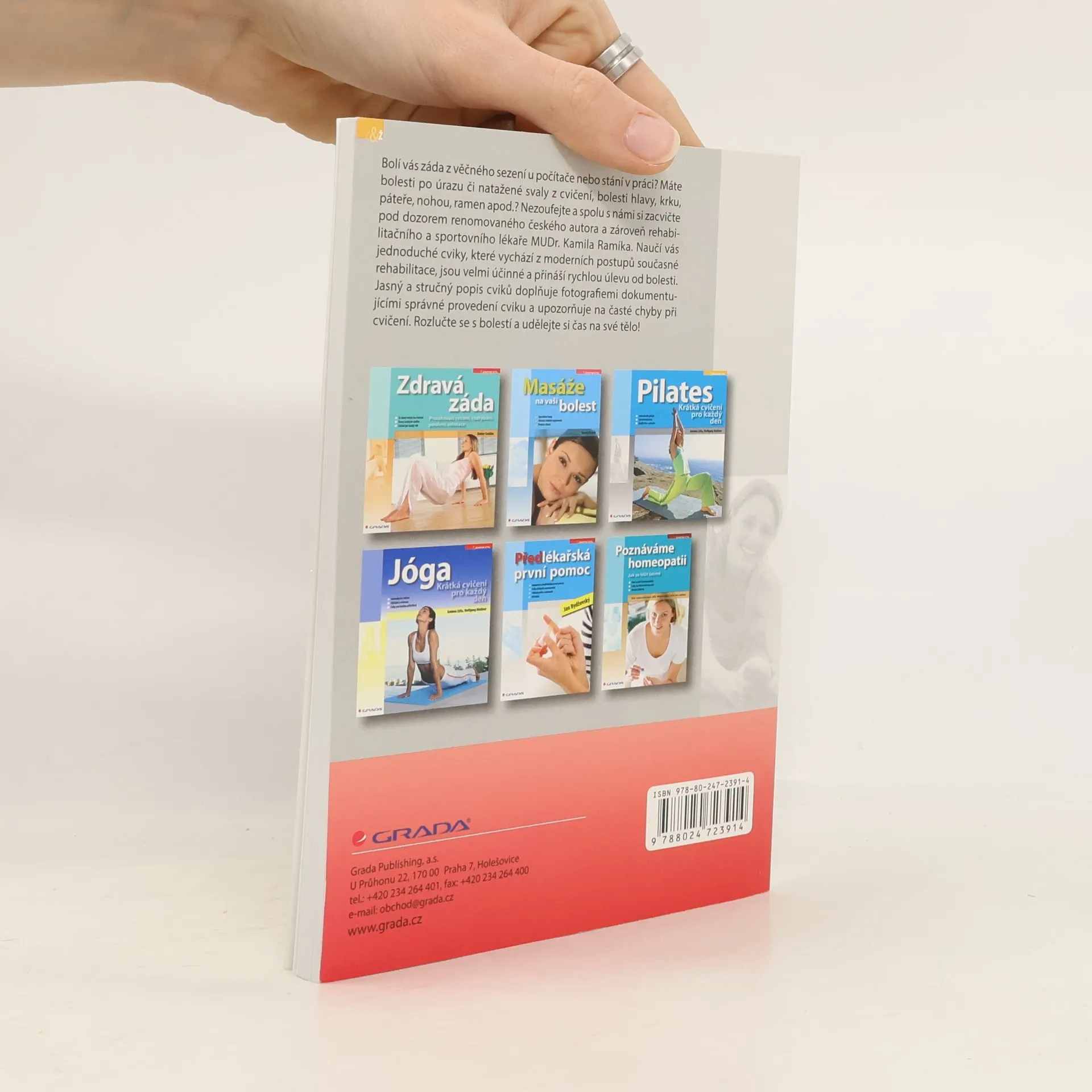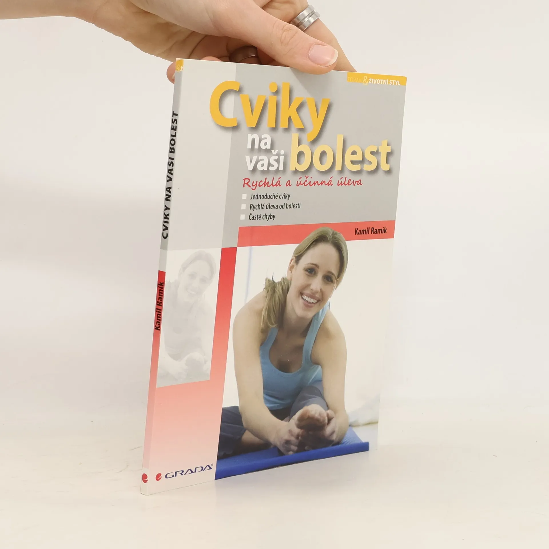 Bolí vás záda z věčného sezení u počítače nebo stání v práci? Máte bolesti po úrazu či natažené svaly z cvičení, bolesti hlavy, krku, páteře, nohou, ramen apod.? Nezoufejte a spolu s námi si zacvičte pod dozorem renomovaného českého autora a zároveň rehabilitačního a sportovního lékaře MUDr. Kamila Ramíka. Naučí vás jednoduché cviky, které vychází z moderních postupů současné rehabilitace, jsou velmi účinné a přináší rychlou úlevu od bolesti. Jasný a stručný popis cviků doplňuje fotografiemi dokumentujícími správné provedení cviku a upozorňuje na časté chyby při cvičení. Rozlučte se s bolestí a udělejte si čas na své tělo!