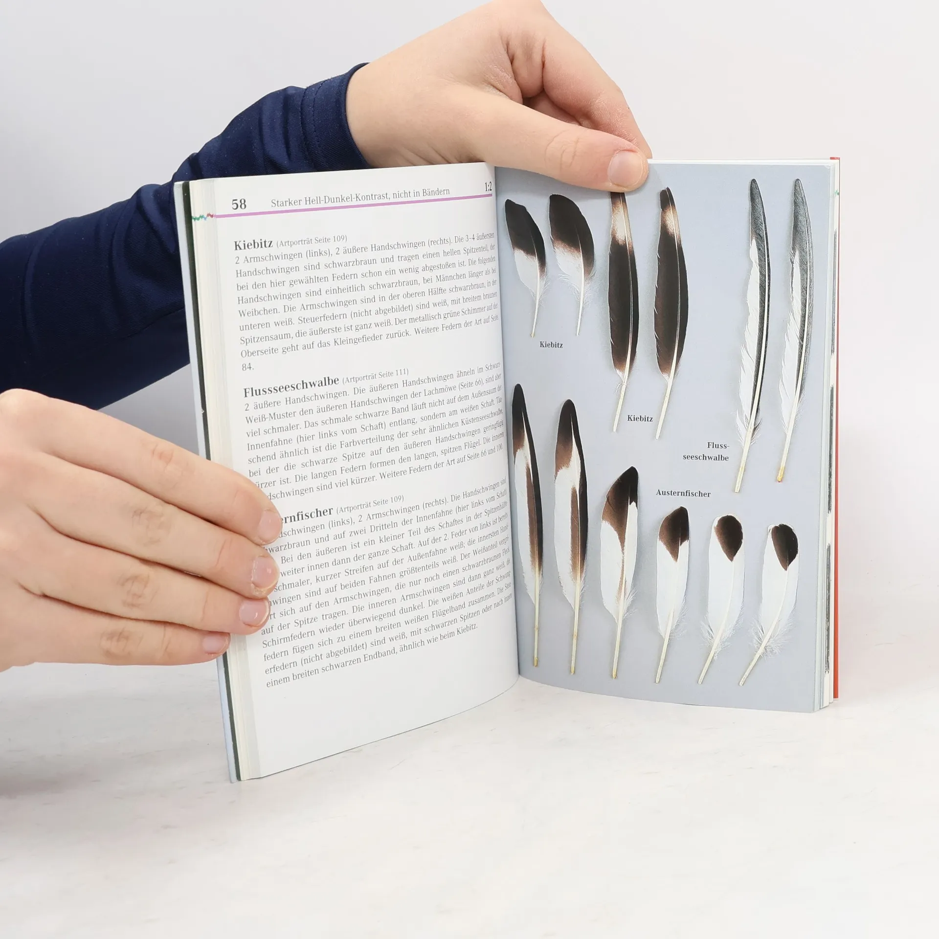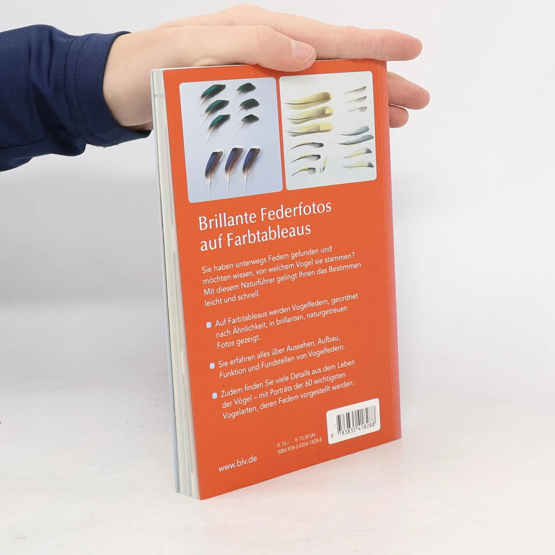 Von welchem Vogel stammt die Feder: leichtes und sicheres Bestimmen anhand der Federfarbe. Detailgenaue Federfotos auf Tableaus, geordnet nach Ähnlichkeit, mit Fakten zu Aussehen, Funktion und häufigen Fundstellen von Vogelfedern. Im Porträt: die 60 wichtigsten Vogelarten, deren Federn gezeigt werden.