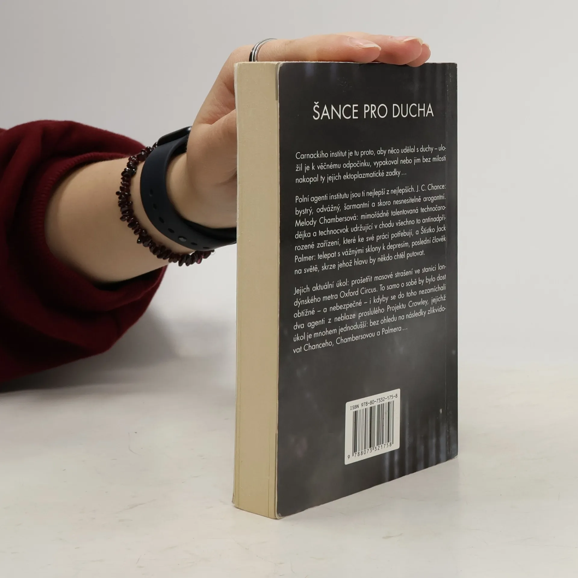 Carnackiho institut je tu proto, aby něco udělal s duchy – uložil je k věčnému odpočinku, vypakoval nebo jim bez milosti nakopal ty jejich ektoplasmatické zadky… Polní agenti institutu jsou ti nejlepší z nejlepších. J. C. Chance: bystrý, odvážný, šarmantní a skoro nesnesitelně arogantní. Melody Chambersová: mimořádně talentovaná technočarodějka a technocvok udržující v chodu všechno to antinadpřirozené zařízení, které ke své práci potřebují a Štístko Jack Palmer: telepat s vážnými sklony k depresím, poslední člověk na světě, skrze jehož hlavu by někdo chtěl putovat. Jejich aktuální úkol: prošetřit masové strašení ve stanici londýnského metra Oxford Circus. To samo o sobě by bylo dost obtížné – a nebezpečné – i kdyby se do toho nezamíchali dva agenti z neblaze proslulého Projektu Crowley, jejichž úkol je mnohem jednodušší: bez ohledu na následky zlikvidovat Chanceho, Chambersovou a Palmera… První díl nové série Hledači duchů.