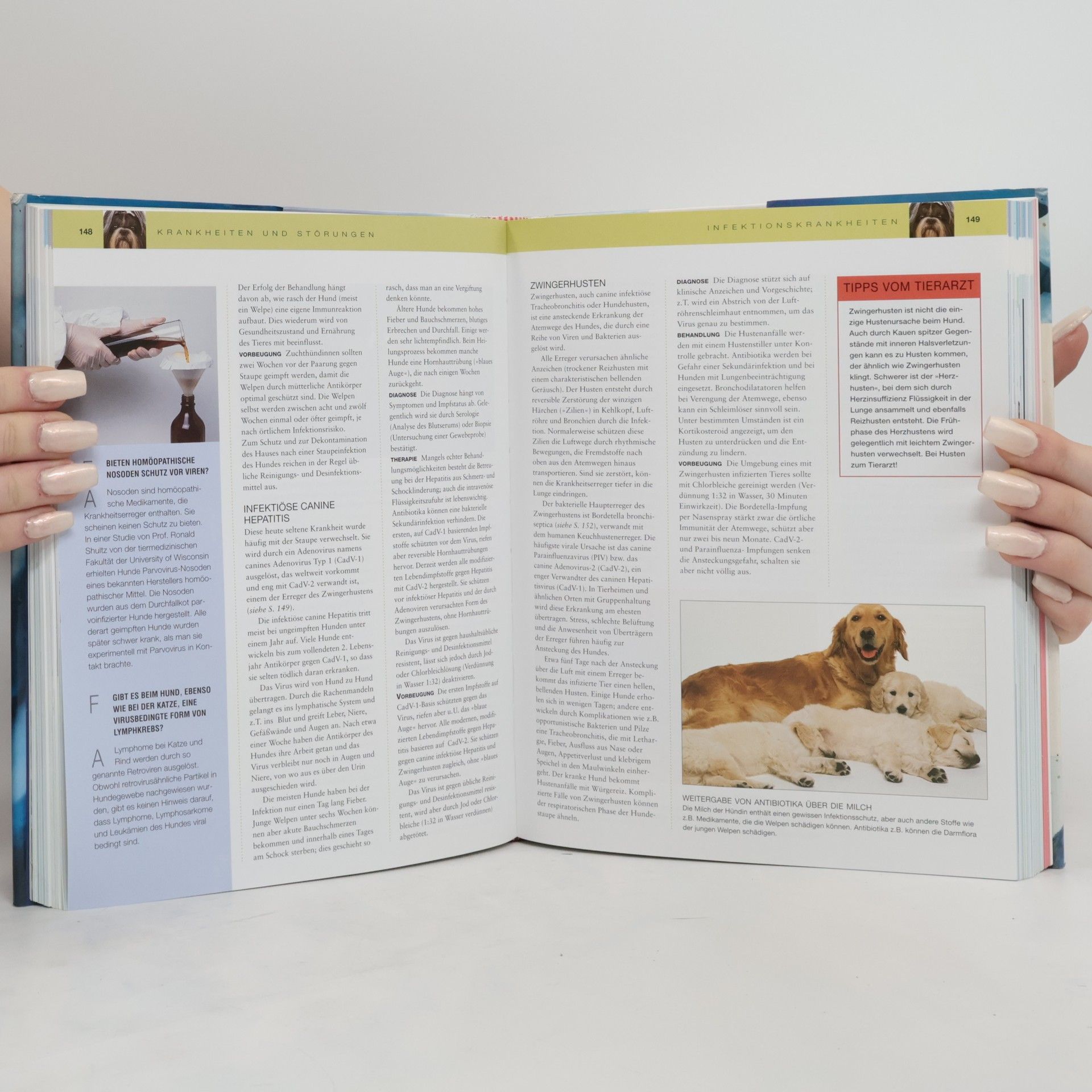 Alle Krankheiten und Störungen, die im Laufe eines Hundelebens - von der Geburt bis ins hohe Alter - auftreten können, werden in diesem Buch ausführlich behandelt, so dass man Krankheitssymptome erkennen und besser entscheiden kann, wann der Tierarzt eingeschaltet werden muss. Mit großer fachlicher Kompetenz und dennoch leicht verständlich erklärt Bruce Fogle mögliche Krankheiten, deren Ursachen, Symptome und Behandlungsmöglichkeiten. - Ständige Pflege: Welpenpflege, Ernährung, Training etc. - Akute Krankheiten/Störungen und deren Diagnose sowie Behandlungsmöglichkeiten - Erste Hilfe in Notfällen - Vorsorgemaßnahmen, Routineuntersuchungen - Kästen mit Tipps vom Tierarzt - Frage-Antwort-Sequenzen bringen zentrale Themen noch einmal auf den Punkt - Hervorragende Illustrationen und Fotos zu Anatomie und Körperfunktionen veranschaulichen die prozesse im Körper - Ein Zusatzregister der medizinische Fachbegriffe bzw. Krankheiten erleichtern die Suche nach dem entsprechenden Kapitel