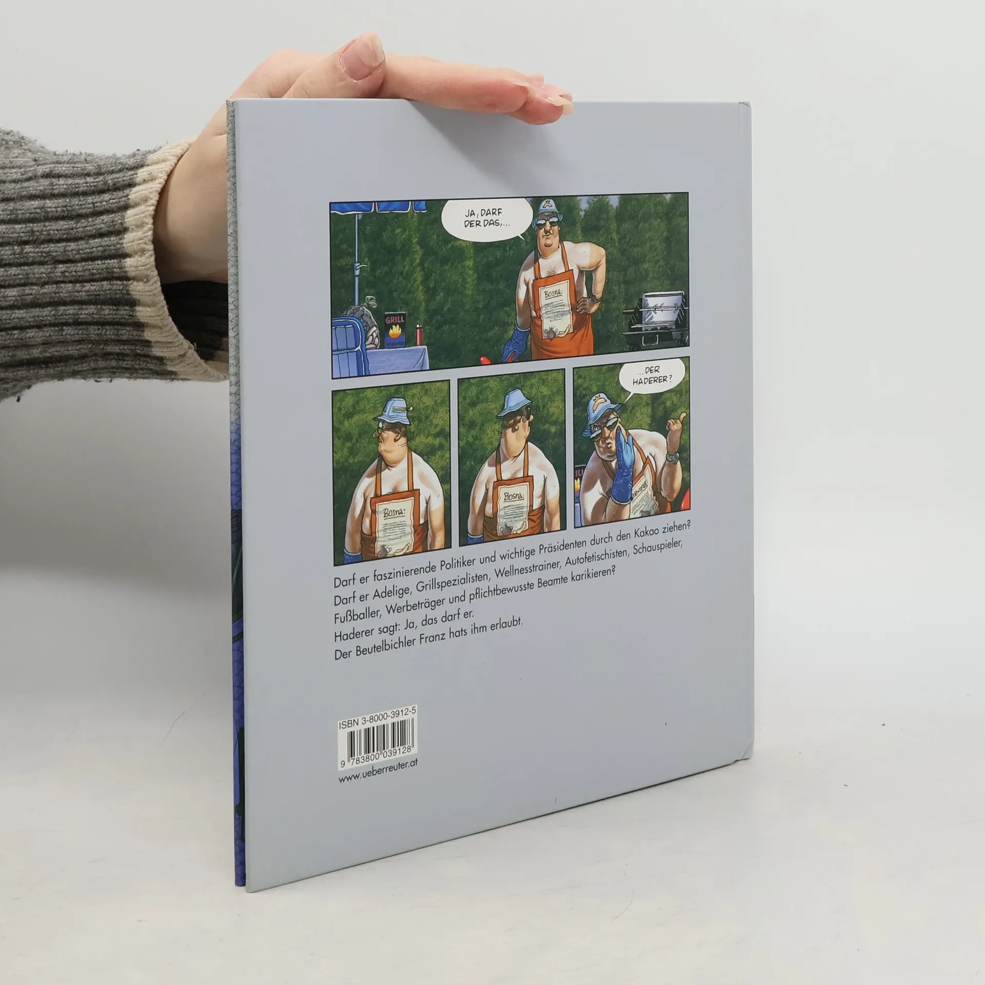 Darf er faszinierende Politiker und wichtige Präsidenten durch den Kakao ziehen? Darf er Adelige, Grillspezialisten, Wellnesstrainer, Autofetischisten, Schauspieler, Fußballer, Werbeträger und pflichtbewusste Beamte karikieren? Haderer sagt Ja, das darf er. Der Beutelbichler Franz hats ihm erlaubt.