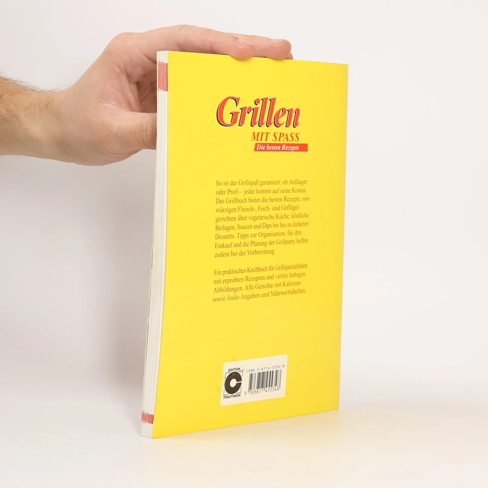 Ein Grillbuch mit erprobten Rezepten für Fleisch, Fisch, Vegetarisches, Salate, Beilagen, aber auch Saucen, Dips und köstliche Desserts. Warenkunde zu den Zutaten und Tipps vervollständigen die Grillbroschur. Die Rezepte-Sammlung enthält über 150 Rezepte mit Kalorien-Joule-Angaben und Nährwerttabellen. Außerdem viele praktische Getränke- und Partytipps, Warenkunde zu den Zutaten sowie Wissenwertes zu Grillgeräten und -zubehör. Ein Organisationsplan für die Grillparty rundet das Ganze ab.