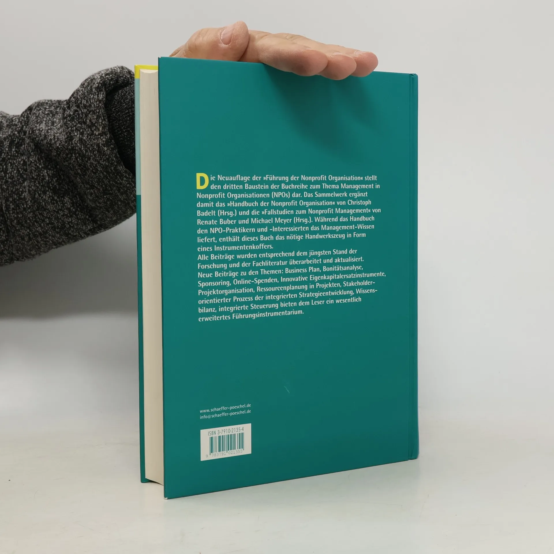 Es bietet damit das praktische Know-how, das Instrumentarium, mit dem sich die vormals beschriebenen Managementstrukturen umsetzen lassen. In die zweite Auflage wurden folgende Beiträge neu aufgenommen: Integrierte Steuerung und Erfolgsmessung Businessplan Online-Spenden Bonitätsanalyse Sponsoring Innovative Finanzierungsformen Projektorganisation Ressourcenplanung E-Learning Wissensbilanz Andere Beiträge wurden deutlich erweitert.