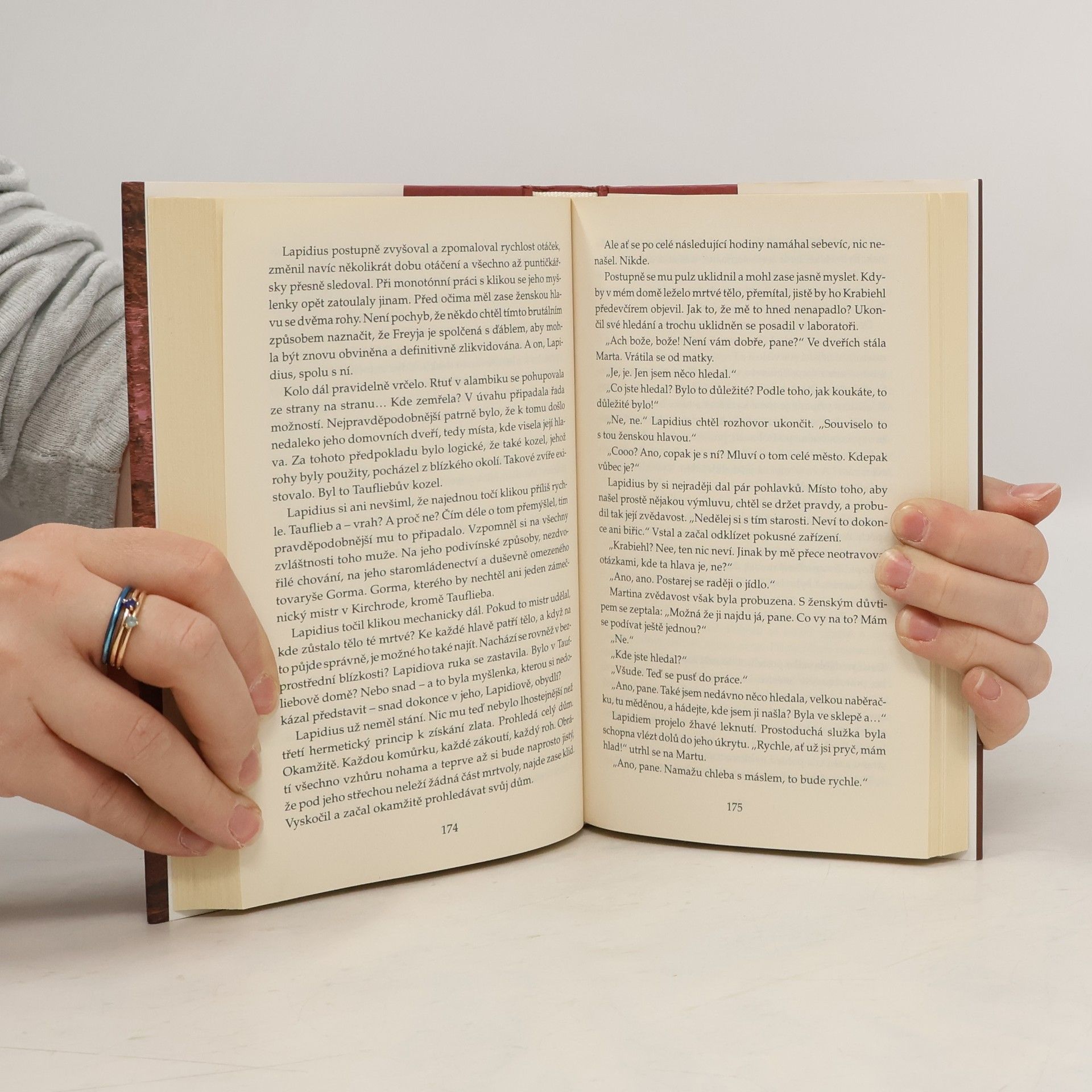 Historický román s kriminální zápletkou se odehrává v roce 1547 ve městě v Horním Harzu, kde se alchymista snaží zachránit dívku obviněnou z čarodějnictví a objasnit vraždy tří žen. V dubnu roku 1547 je čtyřicetiletý magistr Ludolf Lapidius, zámožný alchymista z Braunschweigu, který se před půl rokem usadil v Kirchrode, povolán na radnici, v jejímž sklepení mladá kořenářka Freyja Säcklerová, obviněná na základě svědeckých výpovědí dvou obyvatelek města ze spolčení s ďáblem, upadne během mučení do bezvědomí. Lapidiovi se podaří dívku vzkřísit a na první pohled zjišťuje, že je nakažena syfilidou. Vzbudí pochybnosti o její vině a přesvědčí soudce, aby si vyžádal stanovisko svých nadřízených z Goslaru. Proces je na dvacet dnů přerušen, a tak získá čas, aby se pokusil těžce nemocnou Freyju uzdravit. Odvede ji do vlastního domu, kde ji léčí značně drastickou metodou v horké komoře. Nepřestává věřit v úspěch, neboť i jemu před devíti lety pomohla. Ve městě mezitím vzbudil velký rozruch nález těla znásilněné a zavražděné mladé ženy, na jejímž čele byla vyříznuta písmena F a S. Za několik dnů je objevena hlava další oběti a v lese zabitá košíkářka. Mezi lidmi se šíří neklid a panika. Alchymista, pevně rozhodnutý prokázat dívčinu nevinu a zabránit jejímu upálení, se pouští do nebezpečného pátrání po skutečném pachateli.