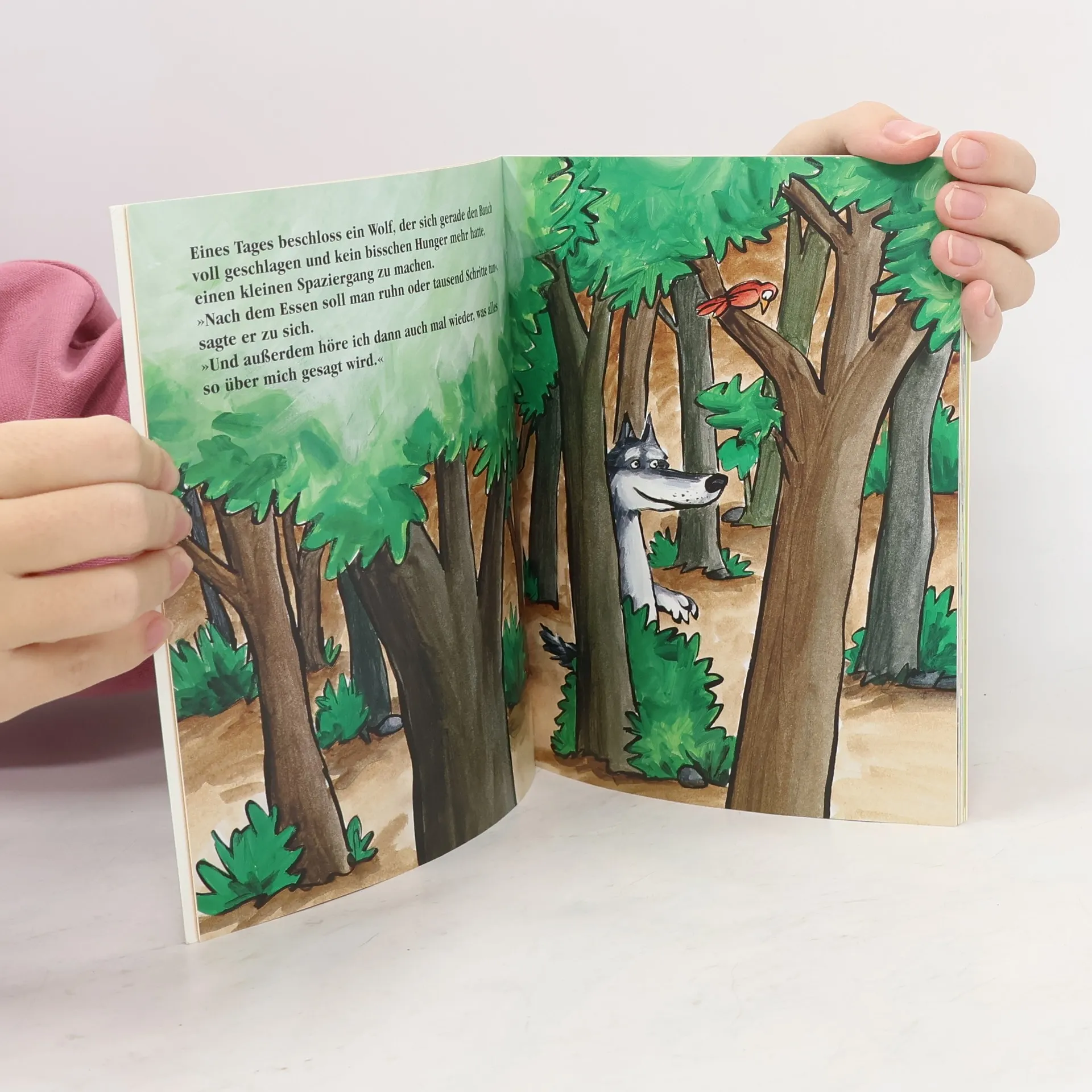 Groß und stark werden ist ein echtes Ziel für Kinder! So stark wie der Wolf etwa? Da läuft er durch den Wald: Der große böse Wolf und immer nur mit dem Wunsch, sich bestätigen zu lassen, dass er der Größte, der Stärkste, der Wildeste ist. Alle, aber auch alle pflichten ihm bei: Ein kleines Häschen genau so wie Rotkäppchen, die drei kleinen Schweinchen so wie die sieben Zwerge. Nur ein Quabbelwabbel, der ihm über den Weg läuft, antwortet auf die Frage: „Weißt auch du, wer der Stärkste im ganzen Land ist?“ ganz frech und selbstbewusst: „Aber natürlich weiß ich das. Das ist meine Mama!“ Dass der Wolf dies nicht akzeptieren mag, liegt auf der Hand. Aber wer dann weiterblättert und die riesige, die Seite sprengende Mama erblickt - der wäre wohl auch so vorwitzig wie der kleine Quabbelwabbel gewesen. Mario Ramos erzählt eine Geschichte, von der sich Kinder immer wieder gerne verblüffen lassen werden und die deshalb das Zeug zum Lieblingsbuch hat.