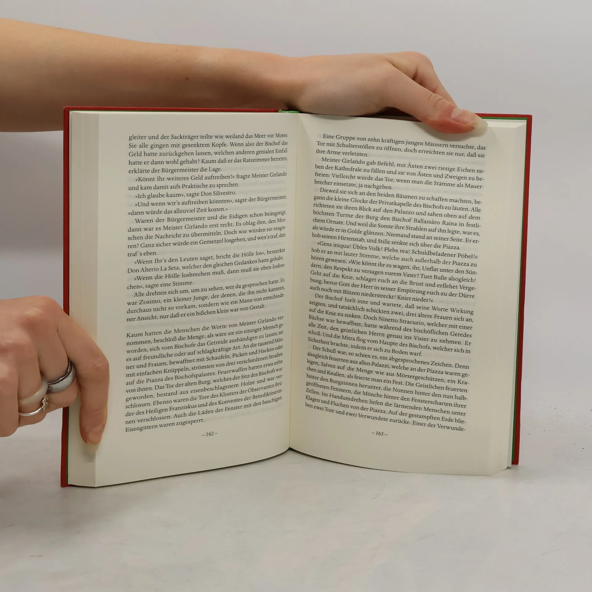 Alle schlitzohrigen Typen aus Montelusa, die wir aus Camilleris schönsten historischen Romanen »Der unschickliche Antrag« oder »Die Mühlen des Herrn« kennen, treten hier in prächtiger Gestalt auf: der korrupte Advokat und Priester, der Unannehmlichkeiten scheuende Polizeibeamte, der Diener, der die Wahrheit kennt, dem sie aber ausgeredet werden muss. Hinzu kommen ein spanischer Herzog – der Roman spielt im 18. Jahrhundert, Sizilien stand unter spanischer Krone – und natürlich das sizilianische Volk, das sich die soziale Gerechtigkeit, die ihm die Herrschenden verwehren, mit höchst eigenwilligen Mitteln erwirbt.