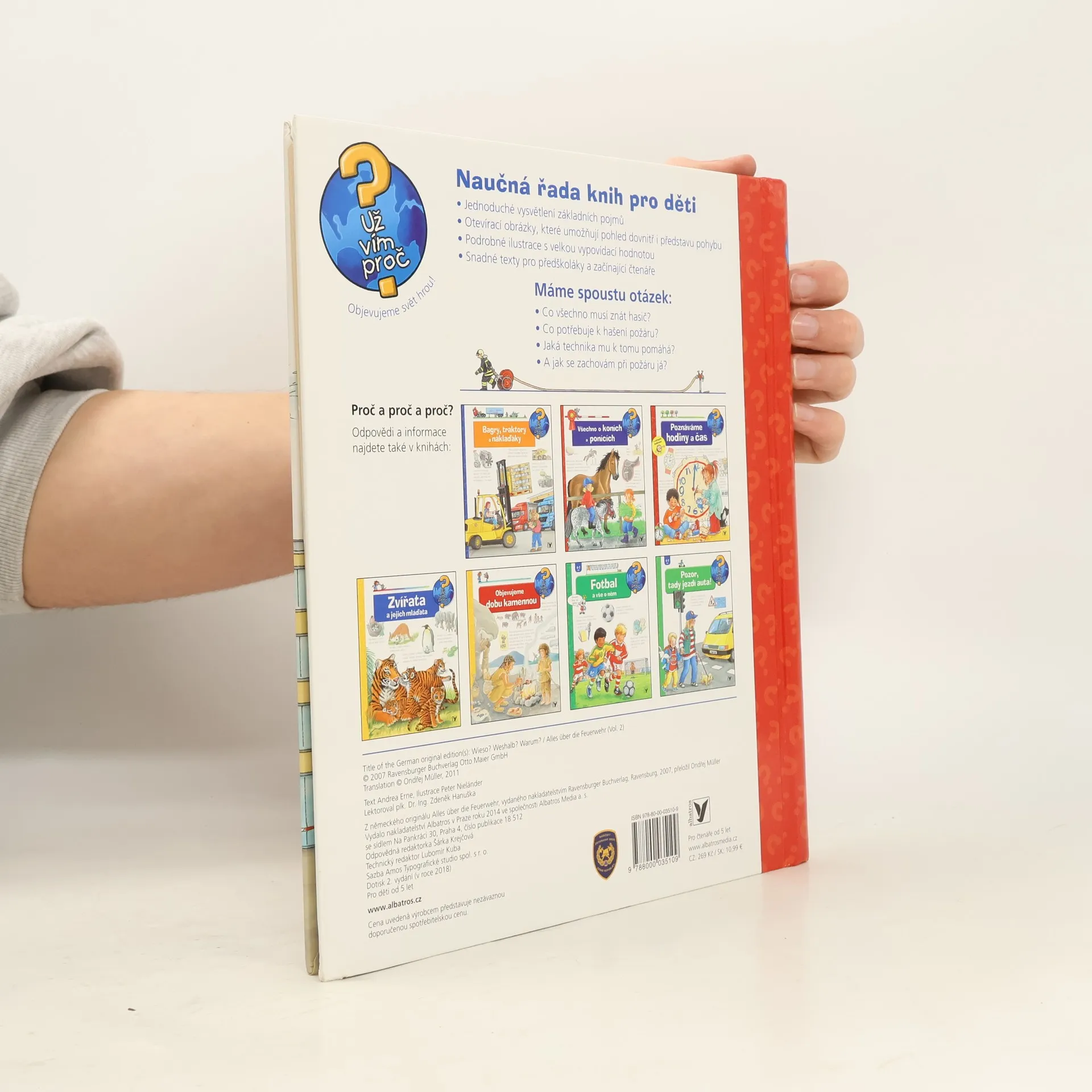 Co všechno musí znát hasič? Co potřebuje k hašení požáru? Co se děje na požární stanici a kde všude ještě hasiči pomáhají? A jak se zachovám při požáru já? Dítě se nejen dozví odpovědi na řadu otázek, ale také získá návod, jak se chovat v nebezpečné situaci.
