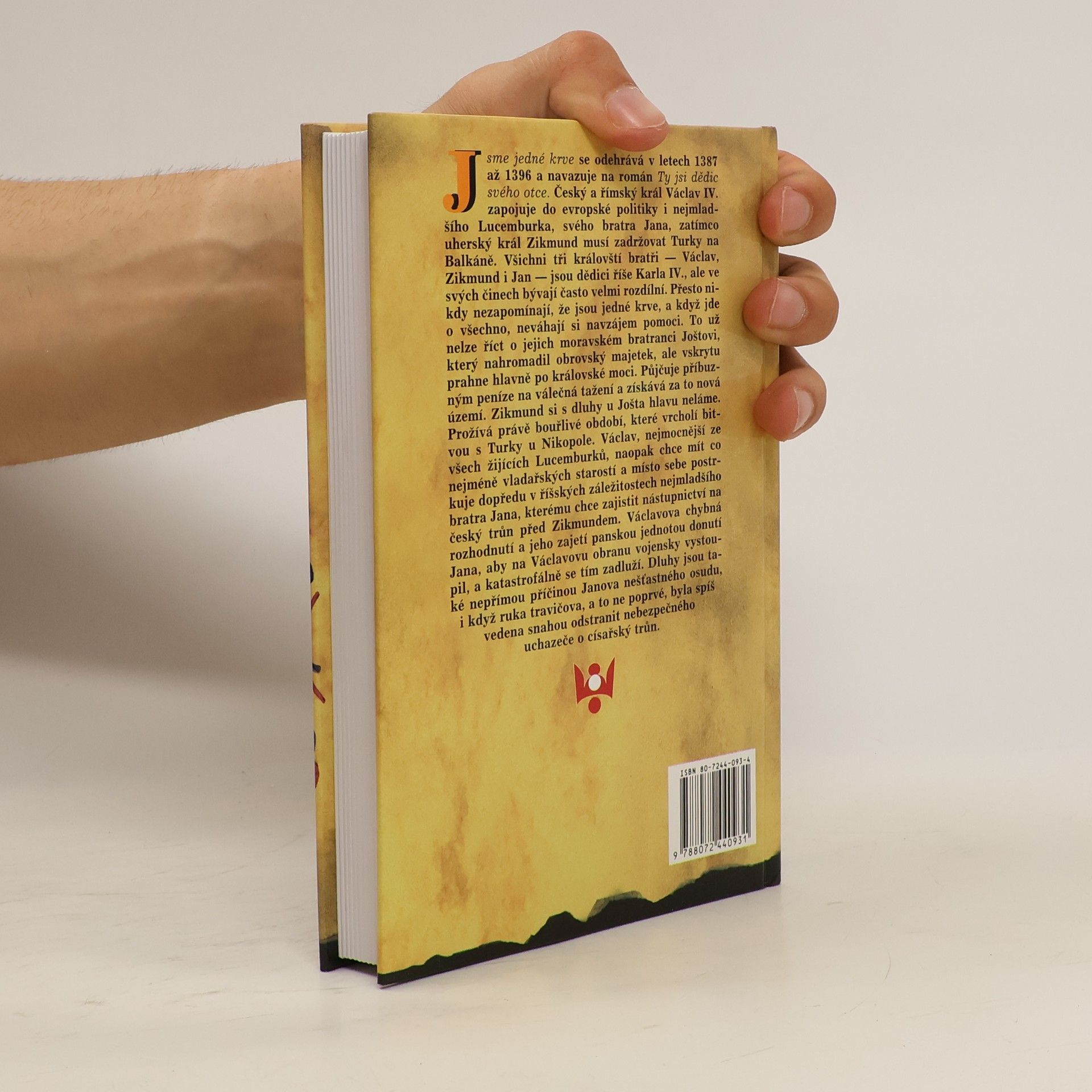 Jsme jedné krve navazuje na román Ty jsi dědic svého otce. Český a římský král Václav IV. zapojuje do evropské politiky i nejmladšího Lucemburka, svého bratra Jana Zhořeleckého, zatímco uherský král Zikmund musí zadržovat Turky na Balkáně. Všichni tři královští bratři -- Václav, Zikmund i Jan -- jsou dědici říše Karla IV., ale ve svých činech bývají často velmi rozdílní. Přesto nikdy nezapomínají, že jsou jedné krve, a když jde o všechno, neváhají si navzájem pomoci. To už nelze říct o jejich moravském bratranci Joštovi, který nahromadil obrovský majetek, ale vskrytu prahne po královské moci. Půjčuje příbuzným peníze na válečná tažení a získává za to nová území. Zikmund si s dluhy u Jošta hlavu neláme. Prožívá právě bouřlivé období, které vrcholí bitvou s Turky u Nikopole. Václav, nejmocnější ze všech žijících Lucemburků, chce mít co nejméně vladařských starostí a místo sebe postrkuje dopředu v říšských záležitostech bratra Jana, kterého měl velmi rád a chtěl mu zajistit nástupnictví na český trůn před Zikmundem. Václavova chybná rozhodnutí a jeho zajetí panskou jednotou donutí Jana, aby na Václavovu obranu vojensky vystoupil, a katastrofálně se tím zadluží. Dluhy jsou také nepřímou příčinou Janova nešťastného osudu, i když ruka travičova, a to ne poprvé, byla spíš vedena snahou odstranit nebezpečného uchazeče o císařský trůn.