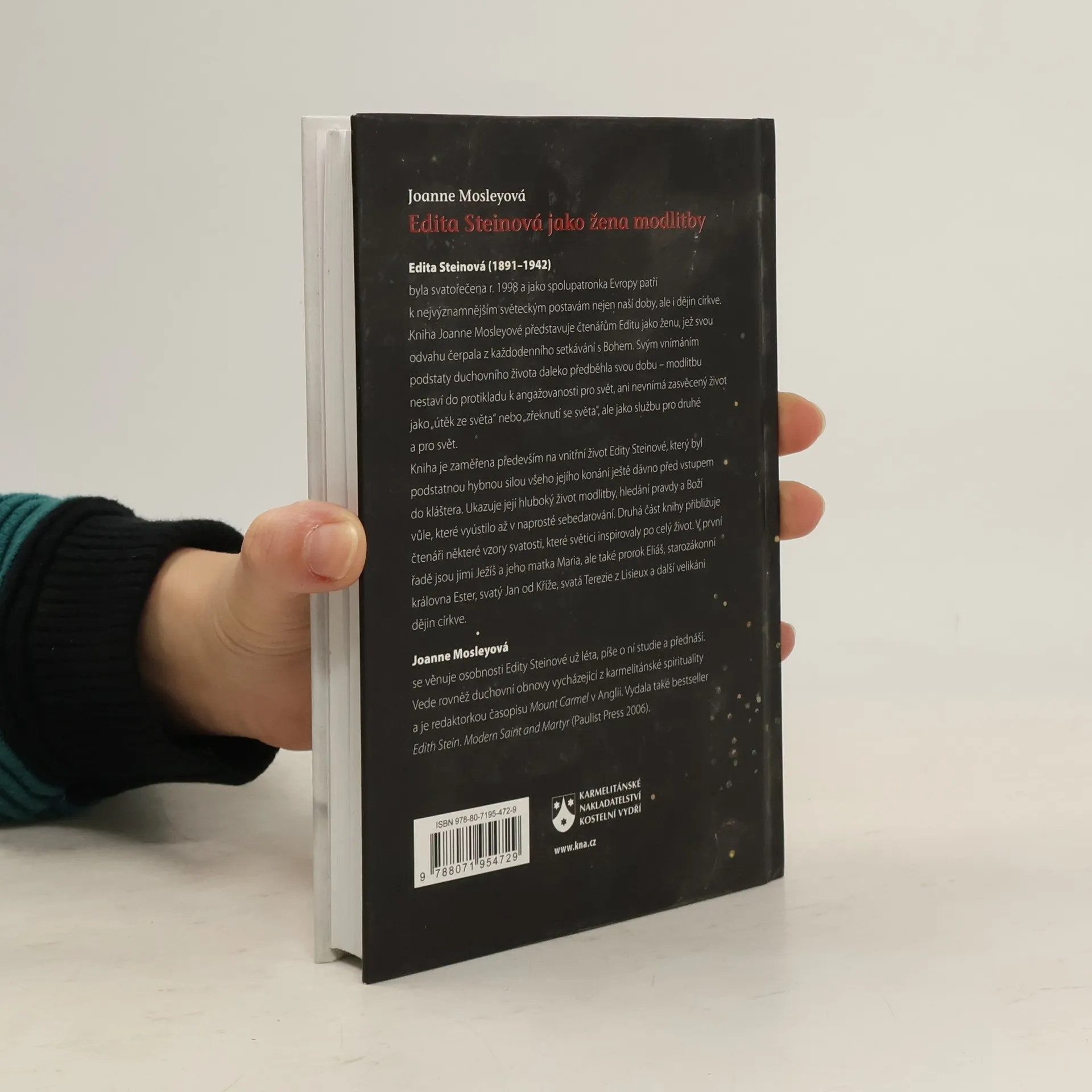 Edita Steinová (1891-1942) byla svatořečena r. 1998 a jako spolupatronka Evropy patří k nejvýznamnějším světeckým postavám nejen naší doby, ale i dějin církve. Kniha Joanne Mosleyové představuje čtenářům Editu jako ženu, jež svou odvahu čerpala z každodenního setkávání s Bohem. Svým vnímáním podstaty duchovního života daleko předběhla svou dobu, například v tom, že modlitbu nestaví do protikladu k angažovanosti pro svět, ani nevnímá zasvěcený život jako „útěk ze světa“ nebo „zřeknutí se světa“, ale jako službu pro druhé a pro svět. Kniha je zaměřena především na vnitřní život Edity Steinové, který byl podstatnou hybnou silou všeho jejího konání ještě dávno před vstupem do kláštera. Ukazuje její hluboký život modlitby, hledání pravdy a Boží vůle, které vyústilo až v naprosté sebedarování. Druhá část knihy přibližuje čtenáři některé vzory svatosti, které světici inspirovaly po celý život. V první řadě jsou jimi Ježíš a jeho matka Maria, ale také prorok Eliáš, starozákonní královna Ester, svatý Jan od Kříže, svatá Terezie z Lisieux a další velikáni dějin církve.