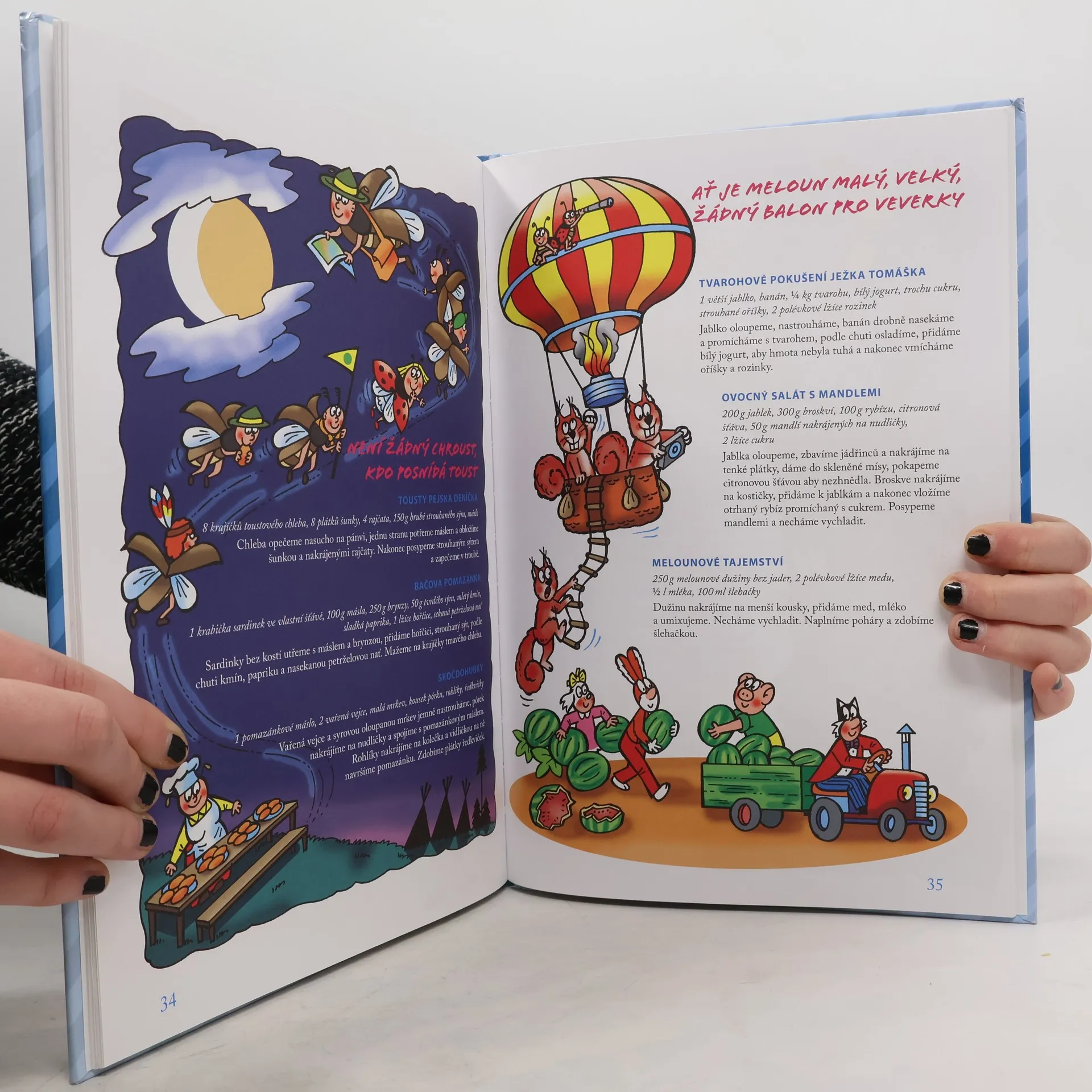Co dobrého nám připraví kamarádi ze Čtyřlístku. Osvědčení autoři našich kuchařek M. Šebestová a J. Němeček připravili pro děti další kuchařku, na jejichž receptech se tentokrát kromě Čtyřlístku podíleli i jejich příbuzní – Fifinčina babička, Bobíkův strýček, Pinďova tetička a Myšpulínův bratr. Samozřejmě, že recepty jsou takové, aby z nich jídlo, nápoje, poháry a další výrobky snadno připravily děti. Na každé stránce knížky jsou kouzelné kresby p. Němečka z pestrého života Čtyřlístku a mnoha jejich zvířecích kamarádu.