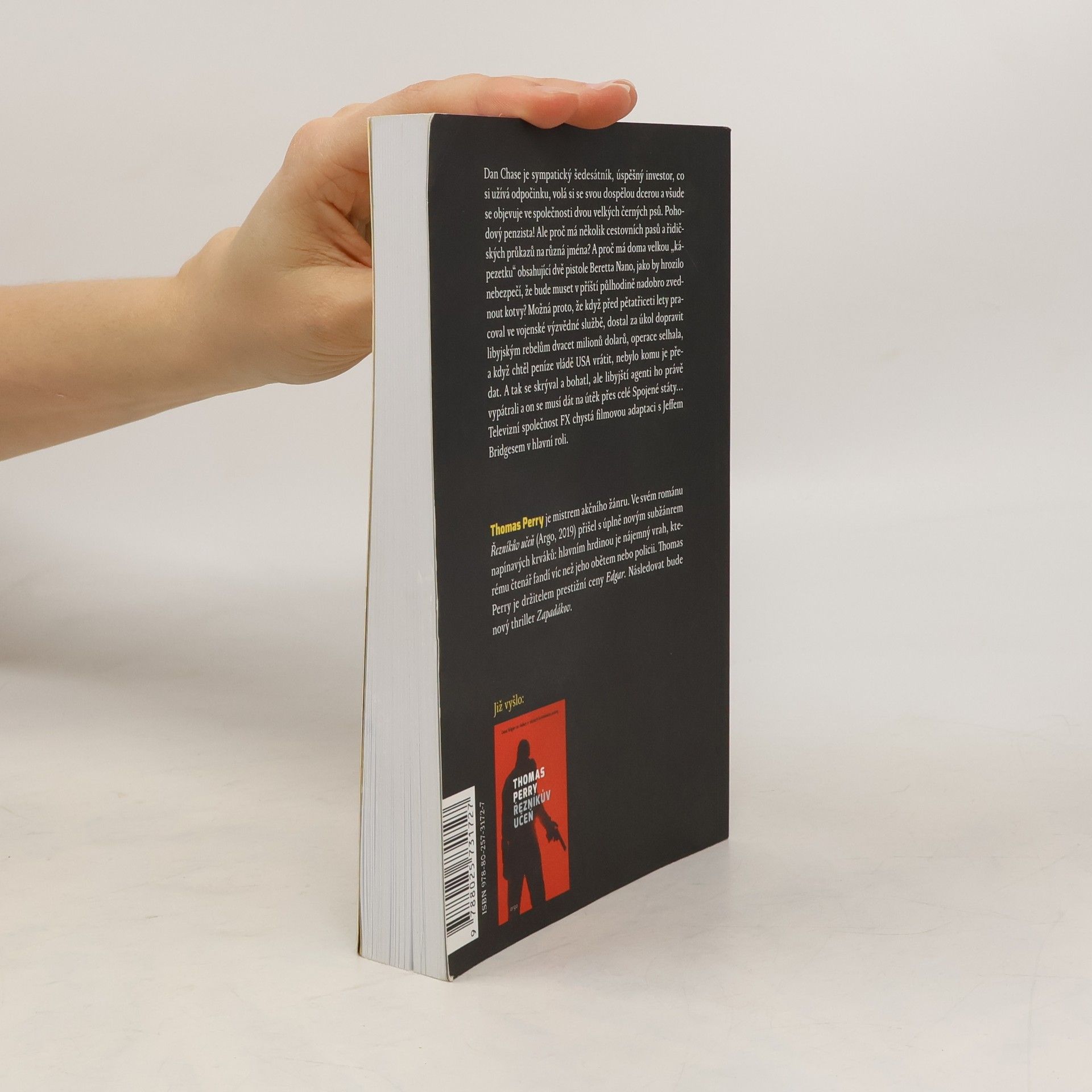 Dan Chase je sympatický šedesátník, úspěšný investor, co si užívá odpočinku, volá si se svou dospělou dcerou a všude se objevuje ve společnosti dvou velkých černých psů. Pohodový penzista! Ale proč má několik cestovních pasů a řidičských průkazů na různá jména? A proč má doma velkou „kápezetku“ obsahující dvě pistole Beretta Nano, jako by hrozilo nebezpečí, že bude muset v příští půlhodině nadobro zvednout kotvy? Možná proto, že když před pětatřiceti lety pracoval ve vojenské výzvědné službě, dostal za úkol dopravit libyjským rebelům dvacet milionů dolarů, operace selhala, a když chtěl peníze vládě USA vrátit, nebylo komu je předat. A tak se skrýval a bohatl, ale libyjští agenti ho právě vypátrali a on se musí dát na útěk přes celé Spojené státy… Televizní společnost FX chystá filmovou adaptaci s Jeffem Bridgesem v hlavní roli. „Rychlé, nesentimentální a uspokojivé. Pro hlavní roli by byl perfektní Liam Neeson.“ Thomas Perry je mistrem akčního žánru. Ve svém románu Řezníkův učeň (Argo, 2019) přišel s úplně novým subžánrem napínavých krváků: hlavním hrdinou je nájemný vrah, kterému čtenář fandí víc než jeho obětem nebo policii.