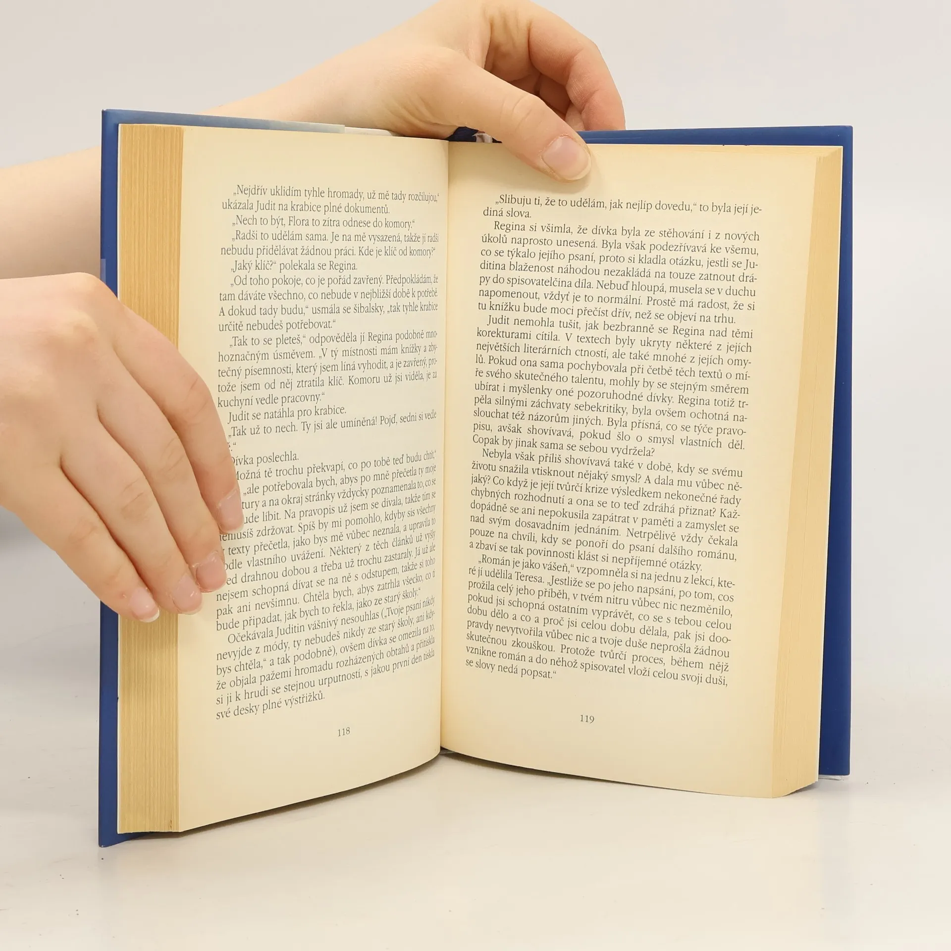 Příběh Judith, mladé dívky z chudého předměstí Barcelony, která se shodou náhod dostane do blízkosti obdivované slavné autorky ženských románů a obrátí tím – a nejen svůj – život úplně naruby. Ukazuje se, že Judith není jen hloupou husičkou snící o slávě a bohatství, a naopak všemi obdivovaná Regina Dalmau ve svých knihách radí všem, ale sobě poradit neumí. A tak zatímco se Regina pokouší hrát s naivní Judith ne zcela čistou hru, děvče vedle stárnoucí hvězdy velmi rychle dospívá a dokáže všechny velmi překvapit. Jedině díky Judith musí Regina nalézt sílu ponořit se do vlastní minulosti. Do příběhu vstupuje postava další ženy – již zesnulá milenka Reginina otce, jejíž písemnou pozůstalost Regina dlouhá léta schovávala netknutou… Vrstevnatá a dějem nabitá próza úspěšné španělské autorky je napínavým a strhujícím příběhem o různorodosti lidských tužeb a přání, o hledání v minulosti a o síle začínat znovu…