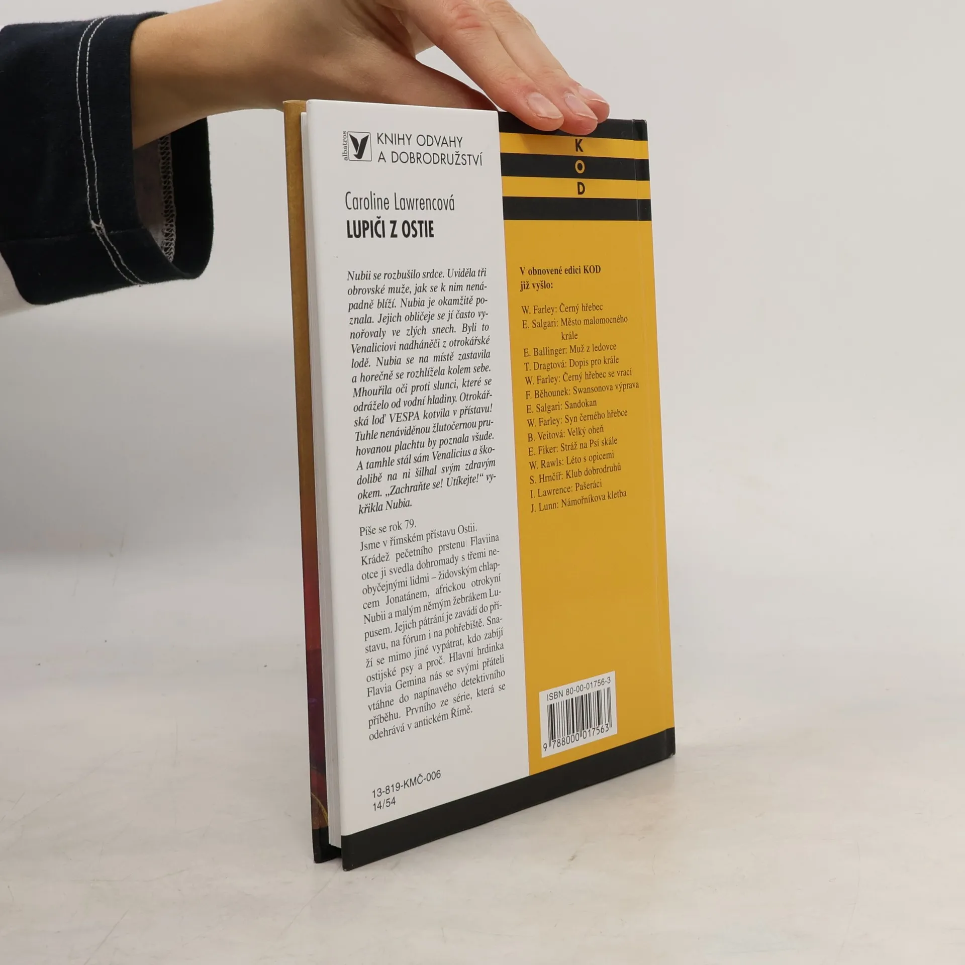 Záhady ze starověkého Říma Detektivně laděný příběh vychází z rekvizit starověkého Říma. Malá hrdinka Flavia se společně se svými stejně starými kamarády snaží vypátrat, kdo zabíjí psy v přístavním městě Ostii a jaký k tomu má důvod. Příběh se odehrává v roce 79 po Kristu... Když se jednou v domě římského námořního důstojníka ztratí zlaté pečetidlo, jeho dcera Flavia se ho vydává hledat... Netuší, jaký řetěz dramatických událostí jeho nálezem odstartuje. Naštěstí na svá dobrodružství není sama, seznámí se s židovským chlapcem Jonatanem, malým němým žebrákem Lupusem i s exotickou dívkou Nubií, kterou sama vykoupila z otroctví. Spojené schopnosti a především jejich přátelství jim nakonec pomůže vyřešit krvavou záhadu zabijáků psů. Kniha z edice KOD. Pro děti od devíti let.