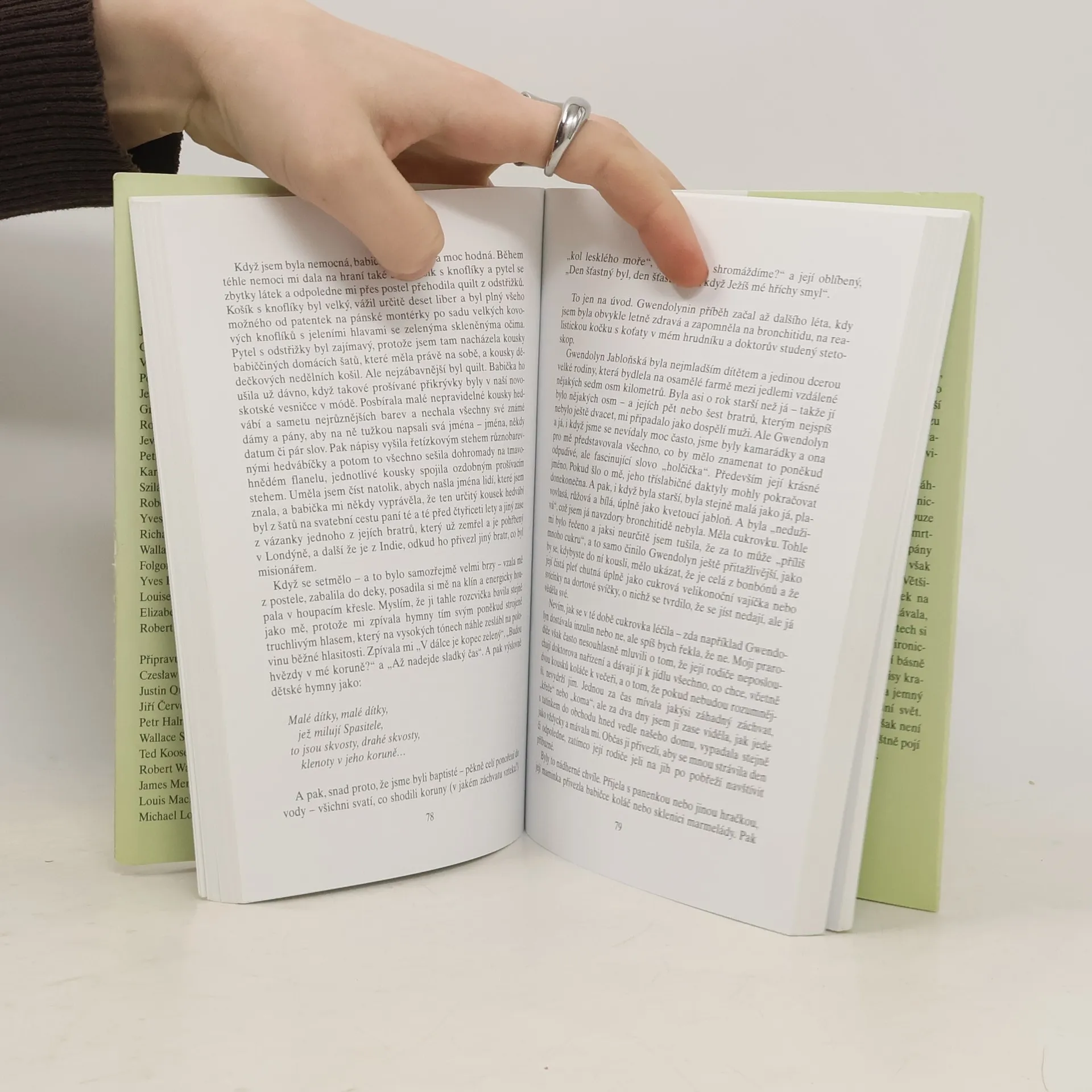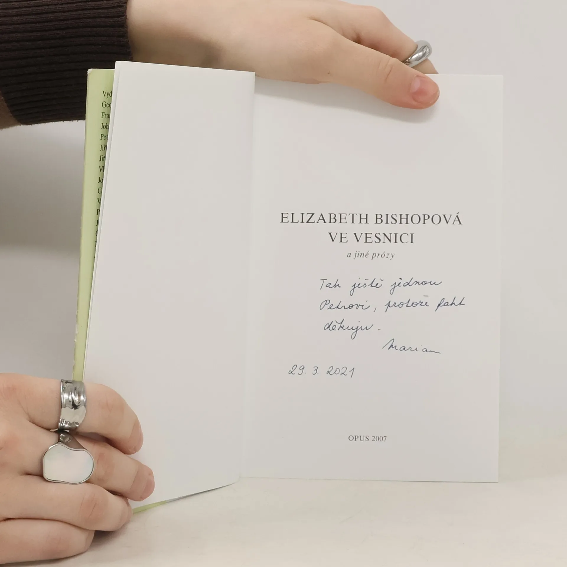 Výbor z próz významné americké básnířky 20. století. Pro její povídky a vzpomínkové texty, podobně jako pro její poezii, jsou typické přesné popisy krajin a zvířat, smysl pro detail a jemný humor, s nímž pozoruje okolní svět, humor, který se ovšem často pojí s podtónem úzkosti a smutku.