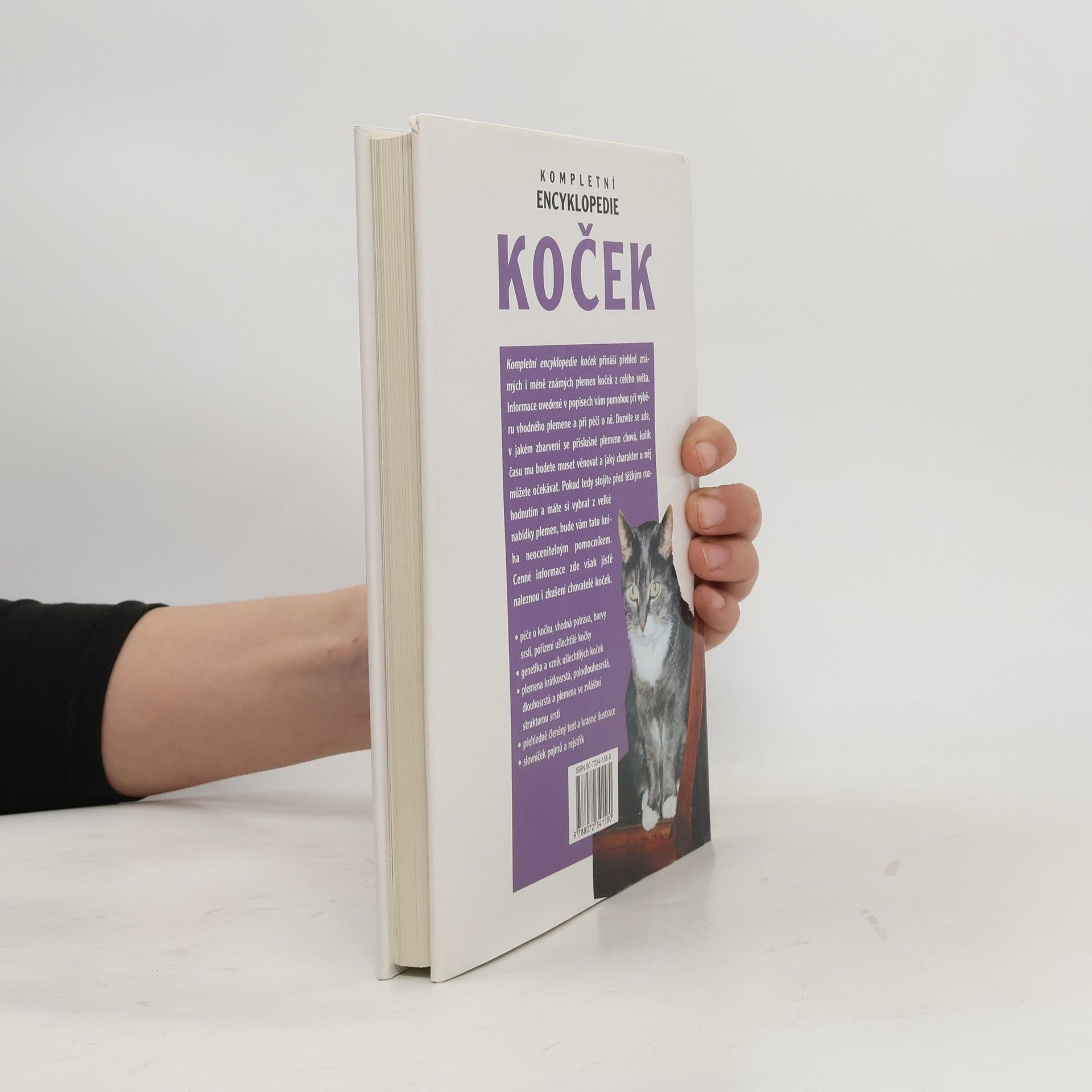 V kompletní encyklopedii koček naleznete veškeré informace, které pro vás mohou být důležité, chcete-li si pořídit čistokrevnou kočku, jež by se k vám dobře hodila. Dozvíte se zde, co musíte před koupí ušlechtilé kočky zvážit, jakou péči a potravu zvíře vyžaduje či jaká existují zbarvení srsti. Rovněž zde najdete stručné pojednání o genetice a o vzniku ušlechtilých koček. Převážnou část knihy pak tvoří přehled jednotlivých známých i méně známých plemen koček z celého světa. Nechybí zde ani zajímavá plemena nová, která zatím nejsou uznána všemi chovatelskými organizacemi, jako je například česká kadeřavá kočka Bohemia rex. Podrobné popisy jsou doprovázeny nádhernými fotografiemi.
