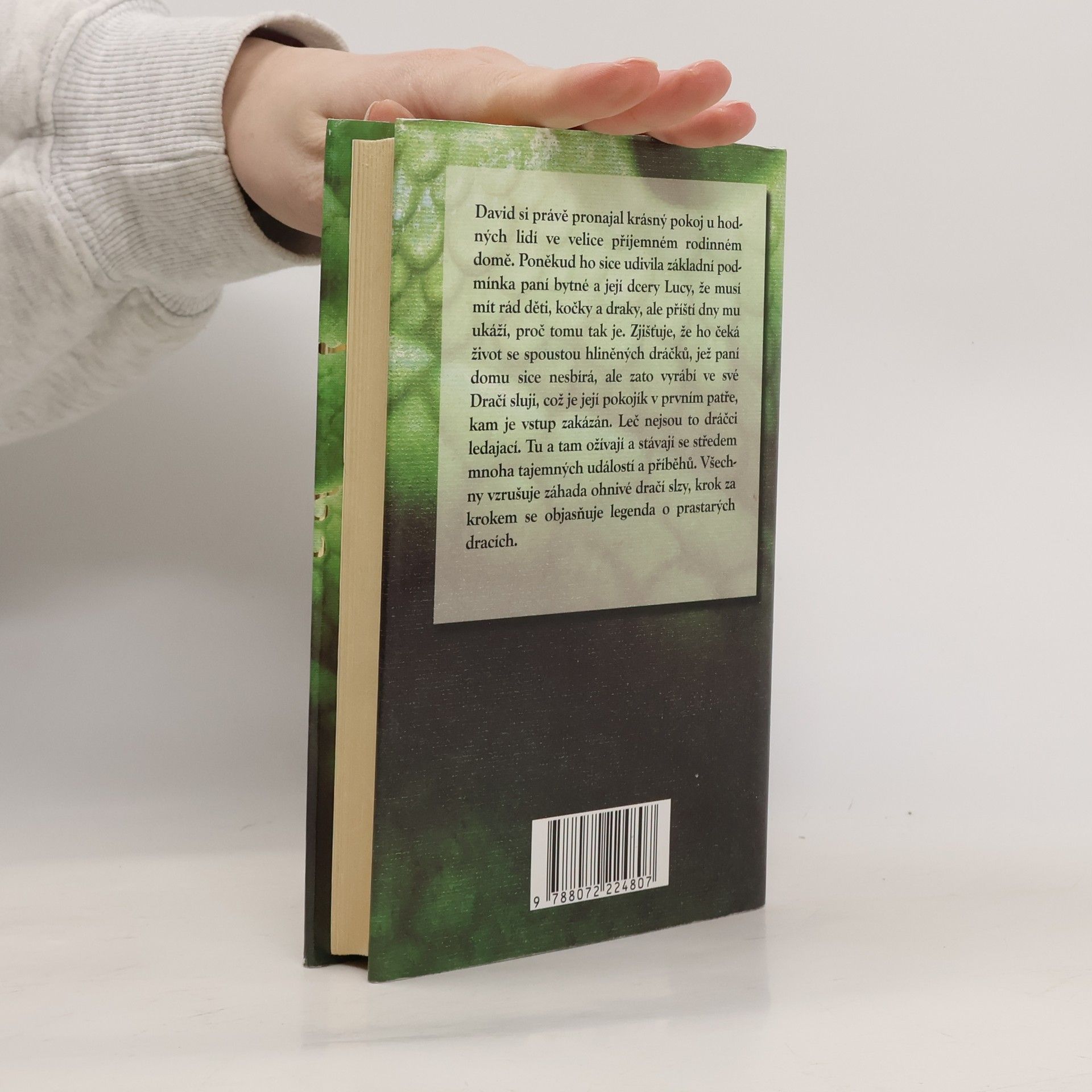 David si právě pronajal krásný pokoj u hodných lidí ve velice příjemném rodinném domě. Poněkud ho sice udivila základní podmínka paní bytné a její dcery Lucy, že musí mít rád děti, kočky a draky, ale příští dny mu ukáží, proč tomu tak je. Zjišťuje, že ho čeká život se spoustou hliněných dráčků, jež paní domu sice nesbírá, ale zato vyrábí ve své Dračí sluji, což je její pokojík v prvním patře, kam je vstup zakázán. Leč nejsou to dráčci ledajací. Tu a tam ožívají a stávají se středem mnoha záhadných událostí a příběhů. Všechny vzrušuje záhada ohnivé dračí slzy, krok za krokem se objasňuje legenda o prastarých dracích…