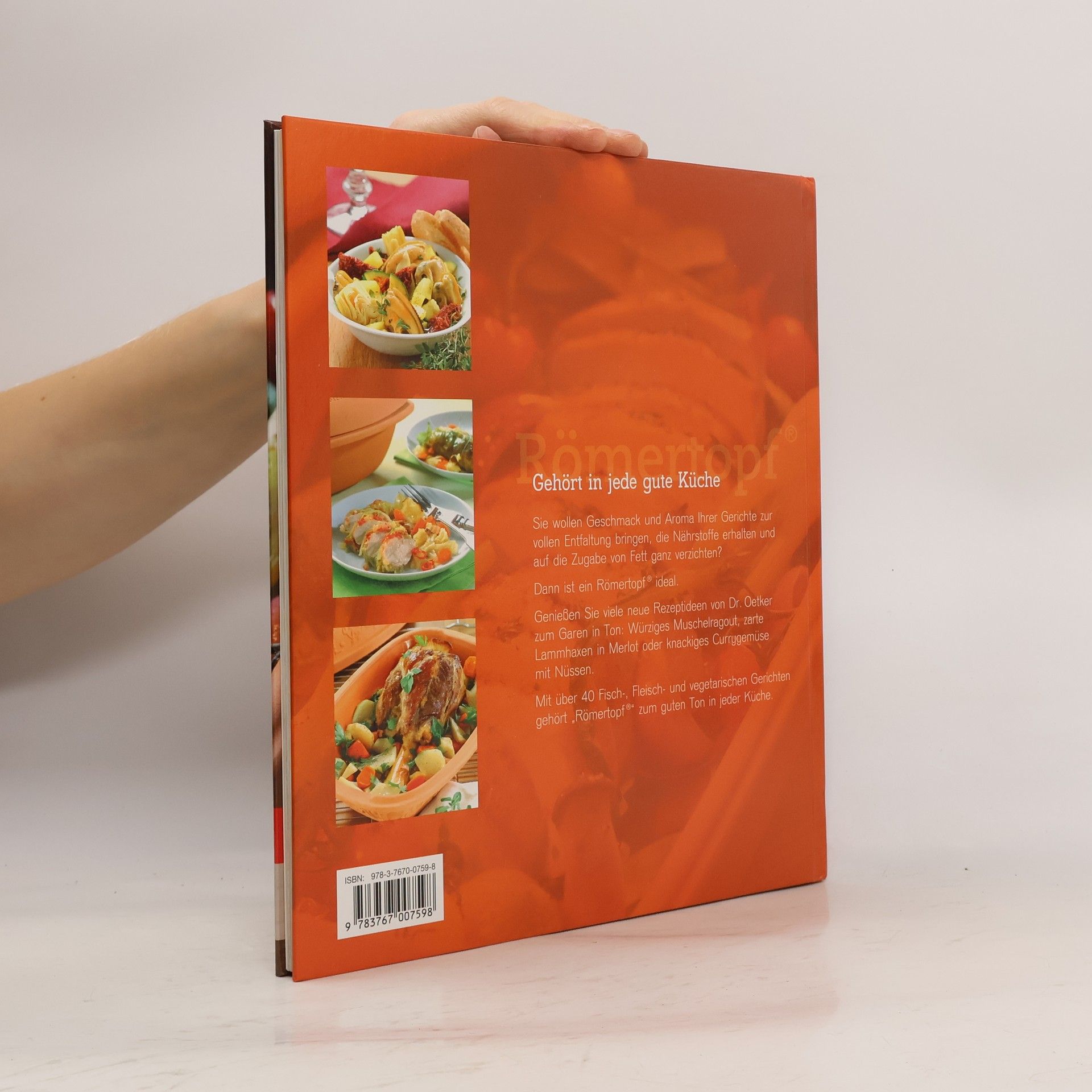 Der gute Ton in jeder Küche Das Garen in Ton ist eine traditionelle Kochtechnik und wird immer beliebter. Mit gutem Grund: Die Nährstoffe bleiben erhalten, Geschmack und Aroma kommen zur vollen Entfaltung und die Zugabe von Fett ist nicht erforderlich. Römertopf bereichert diesen Trend um viele eigene Rezepte: Würziges Muschelragout, zarte Lammhaxen in Merlot, knackiges Currygemüse mit Nüssen und über 40 weitere Fisch-, Fleisch- und vegetarische Gerichte. Damit gehört Römertopf von Dr. Oetker zum guten Ton in jeder Küche.