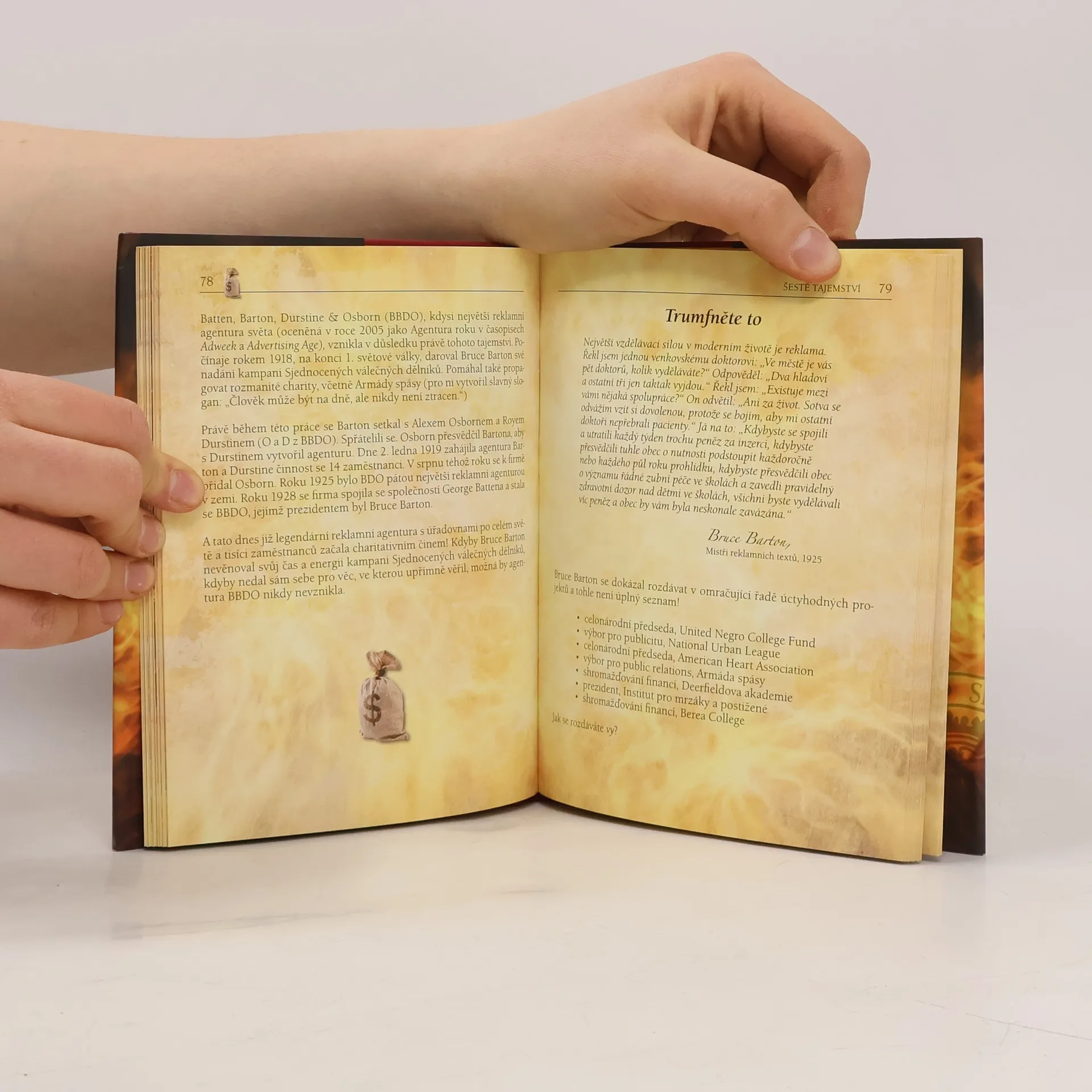 Vášnivá kniha plná nadčasových, inspirativních, vnímavých silných a upřímných myšlenek, které kdysi vyslovil dějinami zapomenutý génius Bruce Barton. Ve třicátých letech minulého století mu říkali mesiáš byznysu, protože Americe pomohl vyváznout z Velké hospodářské krize. Joe Vitale rozvíjí jeho dílo tak, aby je bylo možno využít při překonávání nynější ekonomické recese. Každá ze šestnácti kapitol je velkým poučením, tentokrát o životě v konkurenci a úspěchu v podnikání