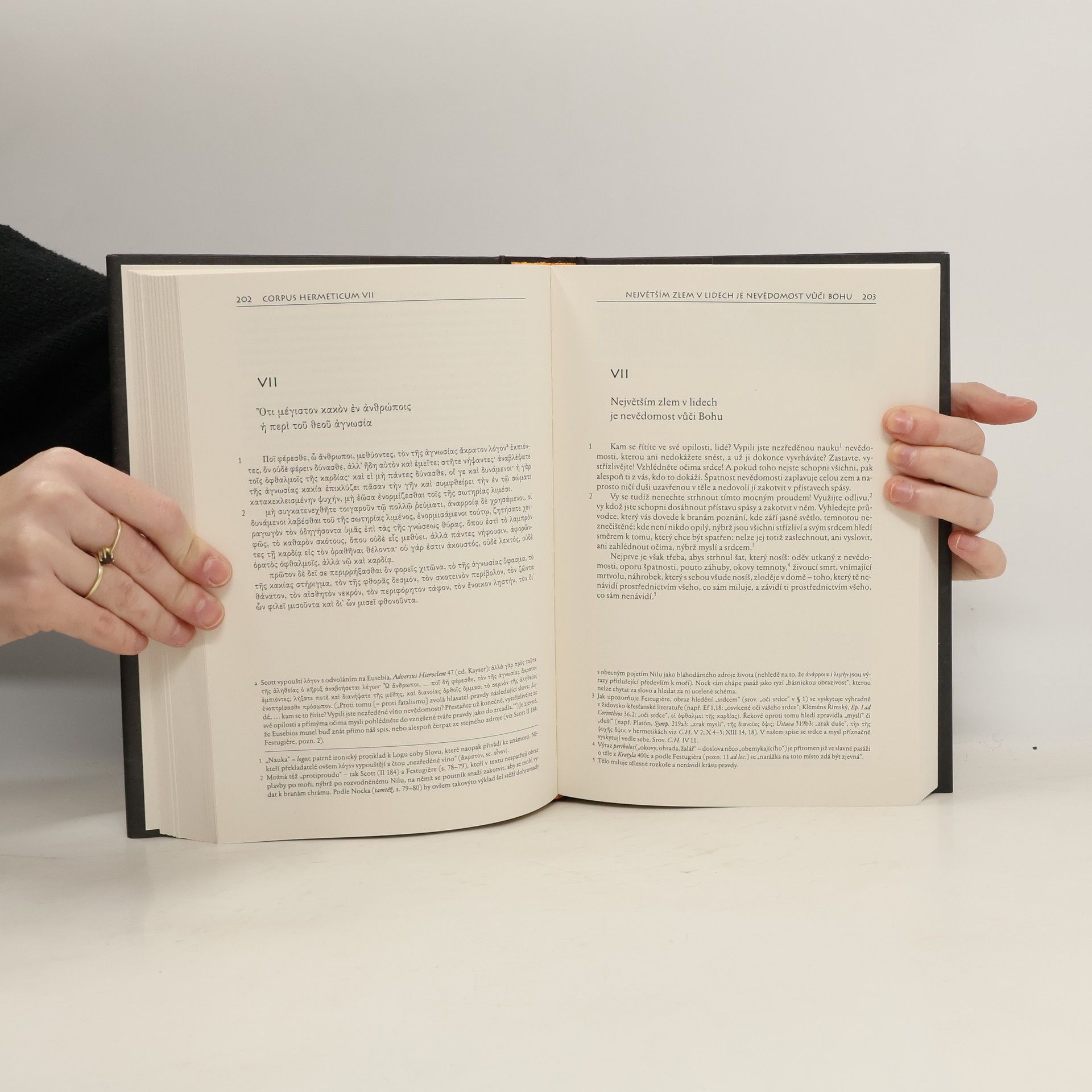 Jádro publikace tvoří texty a překlady souboru řeckých hermetických spisů s komentářem, ozřejmujícím argumentaci hermetických autorů. Doprovodná studie uvádí základní historická fakta o hermetismu a jeho základní témata, a načrtává hlavní směry jeho moderní akademické interpretace. Z religionistických pozic se pokouší o vyrovnání rozporu mezi dvěma zdánlivě neslučitelnými přístupy, které se hermetickými spisy vinou: kosmickým "optimismem" a gnostizujícím "pesimismem".