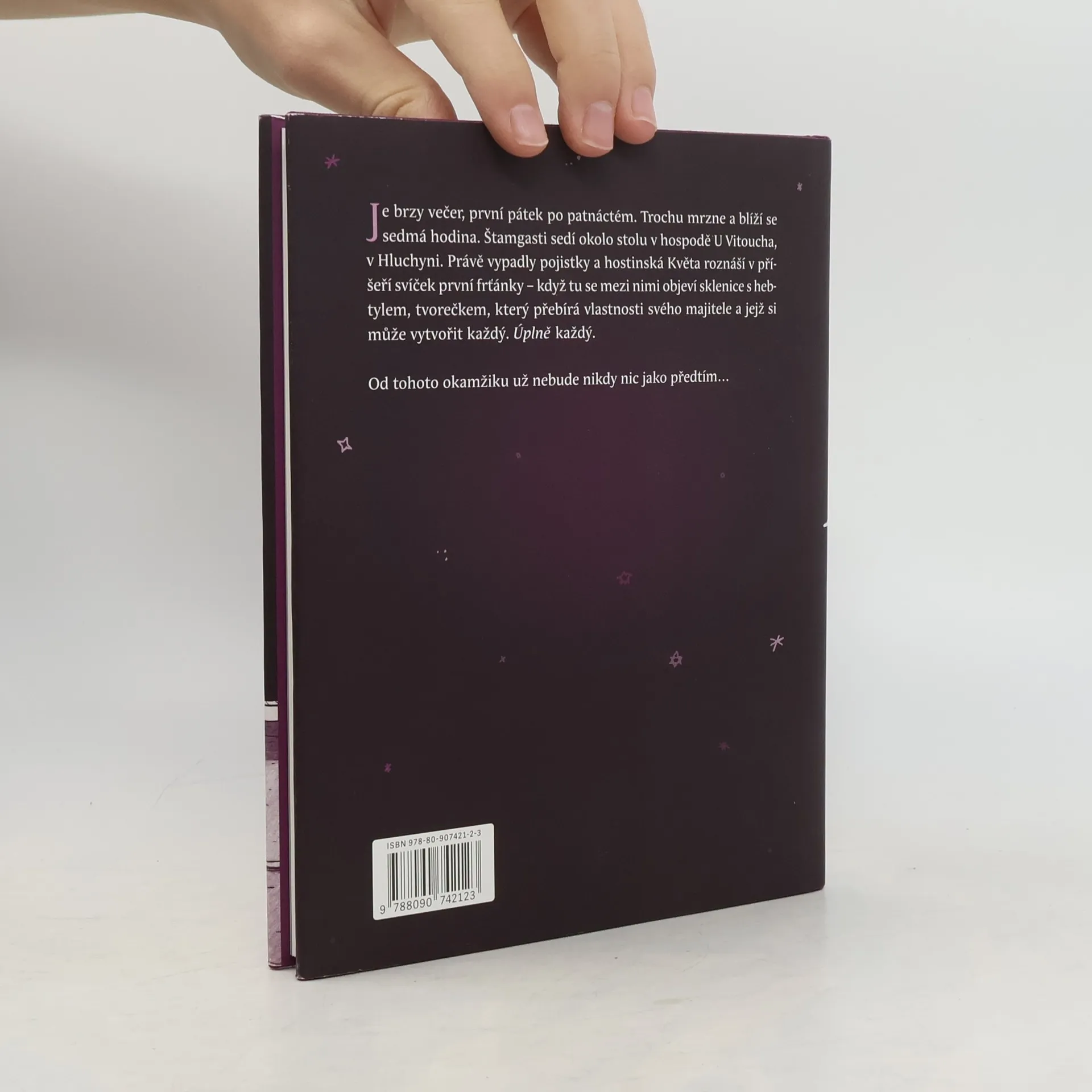 Je brzy večer, první pátek po patnáctém. Trochu mrzne a blíží se sedmá hodina. Štamgasti sedí okolo stolu v hospodě U Vitoucha, v Hluchyni. Právě vypadly pojistky a hostinská Květa roznáší v příšeří svíček první frťánky – když tu se mezi nimi objeví sklenice s hebtylem, tvorečkem, který přebírá vlastnosti svého majitele a jejž si může vytvořit každý. Úplně každý. Od tohoto okamžiku už nebude nikdy nic jako předtím…
