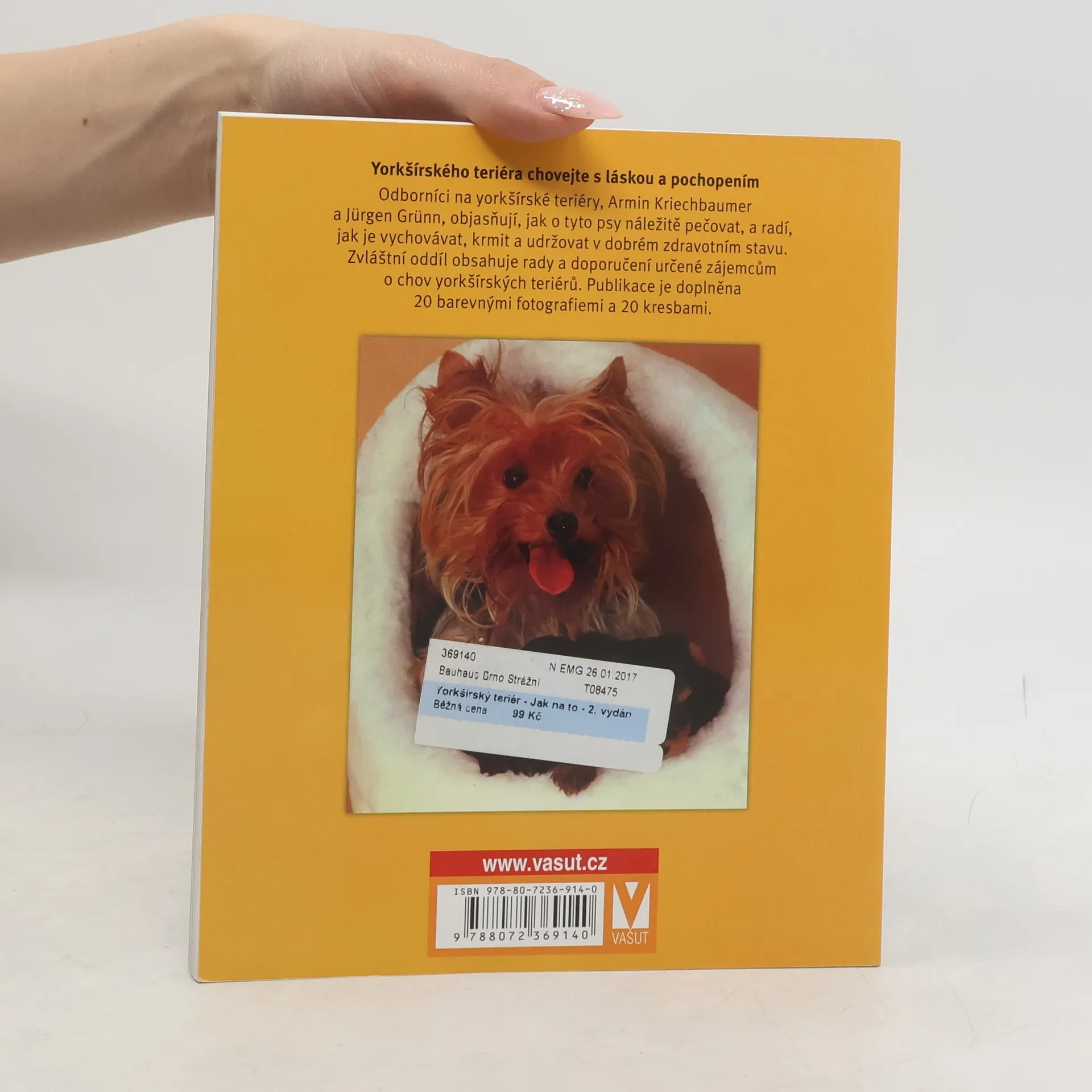 Odborníci na yorkšírské teriéry objasňují, jak o tyto psy náležitě pečovat, a radí, jak je vychovávat, krmit a udržovat v dobrém zdravotním stavu. Zvláštní oddíl obsahuje rady a doporučení určené zájemcům o chov yorkšírských teriérů. Publikace je doplněna 20 barevnými fotografiemi a 20 kresbami.