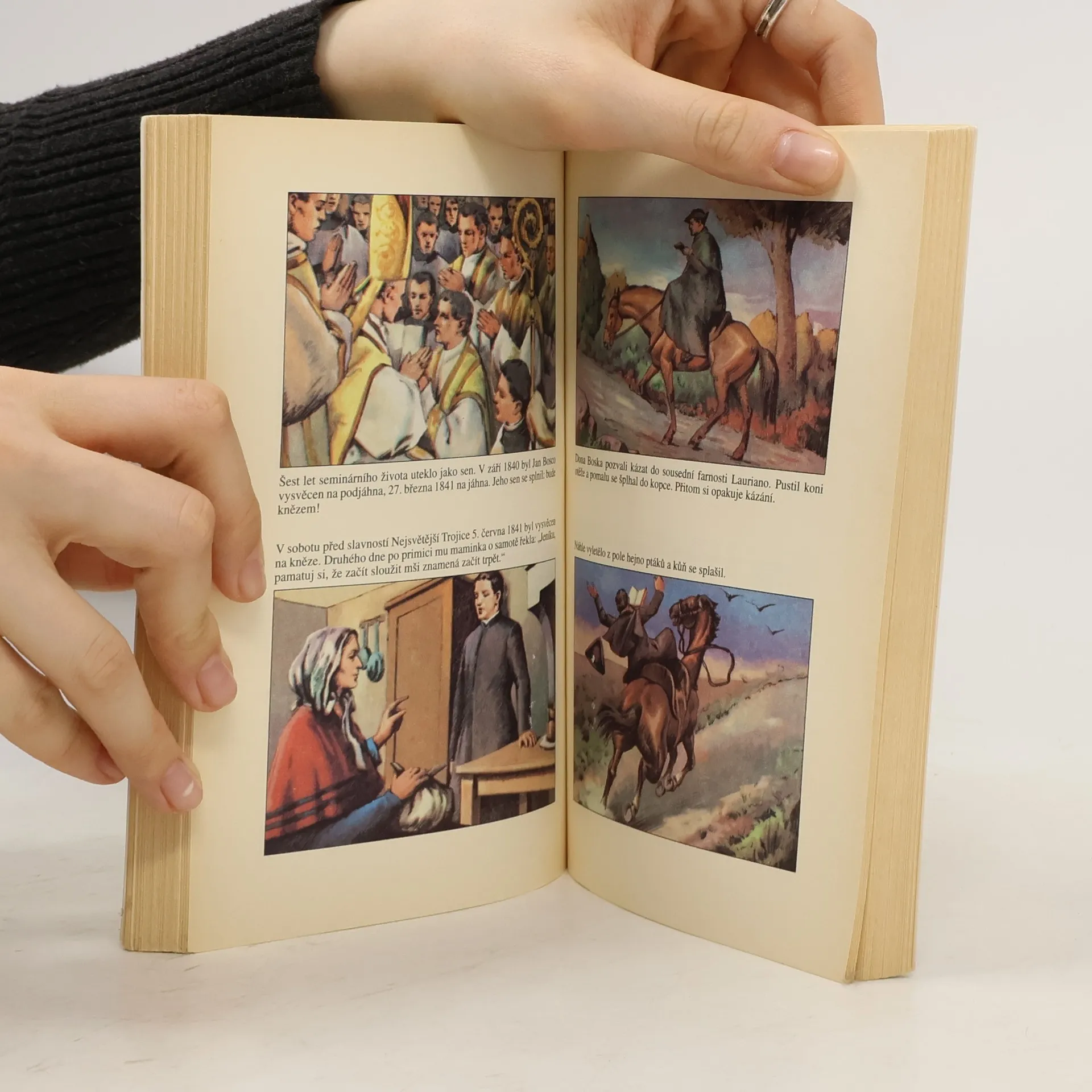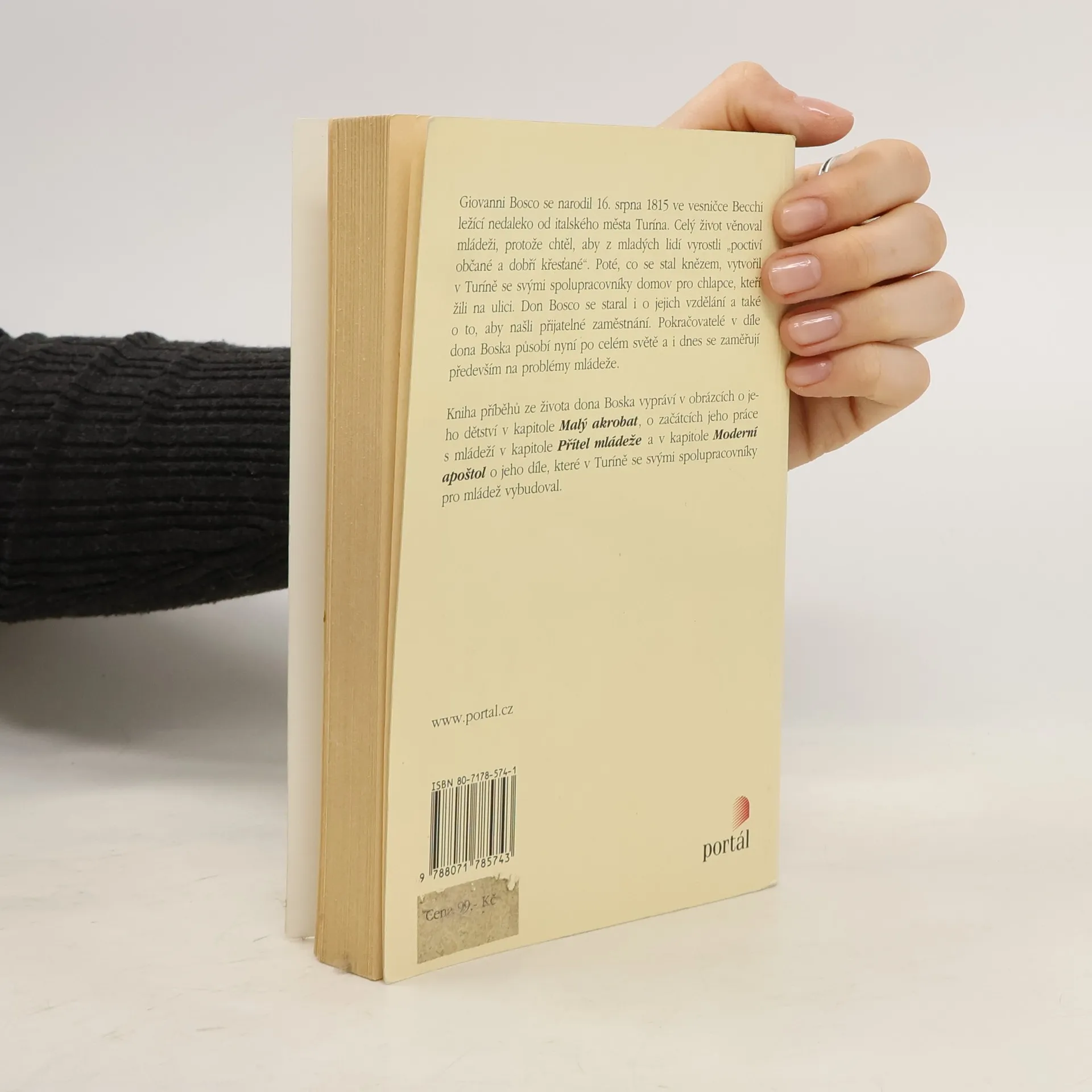 Kniha příběhů ze života dona Bosca vypráví v obrázcích o jeho dětství v kapitole Malý akrobat, o začátcích jeho práce s mládeží v kapitole Přítel mládeže a v kapitole Moderní apoštol o jeho díle, které v Turíně se svými spolupracovníky pro mládež vybudoval.
