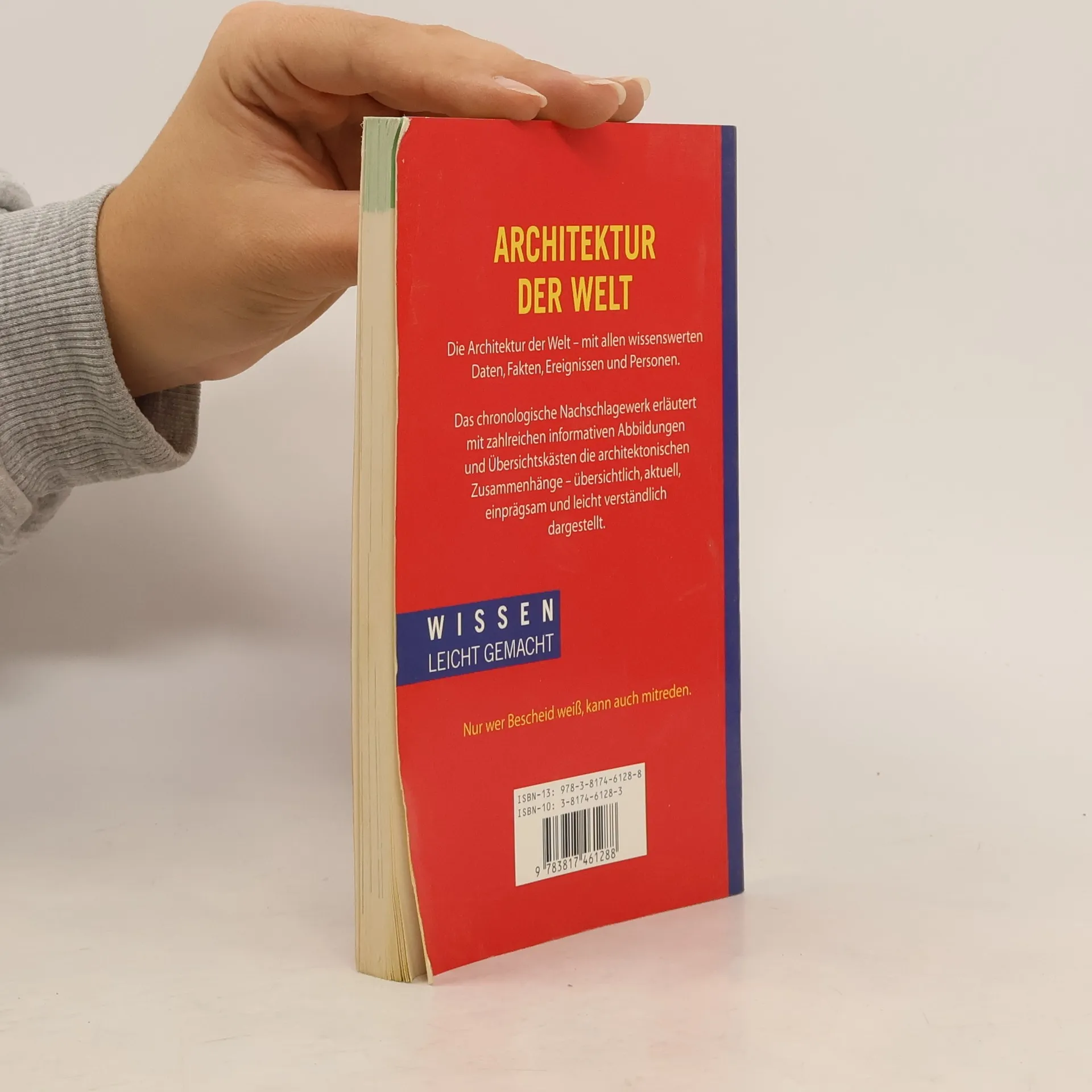 In übersichtlicher und leicht verständlicher Form bietet dieses Nachschlagewerk das wichtigste Wissen zu dem Thema Architektur. Das Buch ist gegliedert nach den sechs wichtigsten Epochen der Architekturgeschichte (Antike, Mittelalter, Renaissance, Barock und Rokoko, Klassizismus und Jugendstil, Art Nouveau bis Gegenwart). Mit zahlrechen Abbildungen und ausführlichem Sachregister.