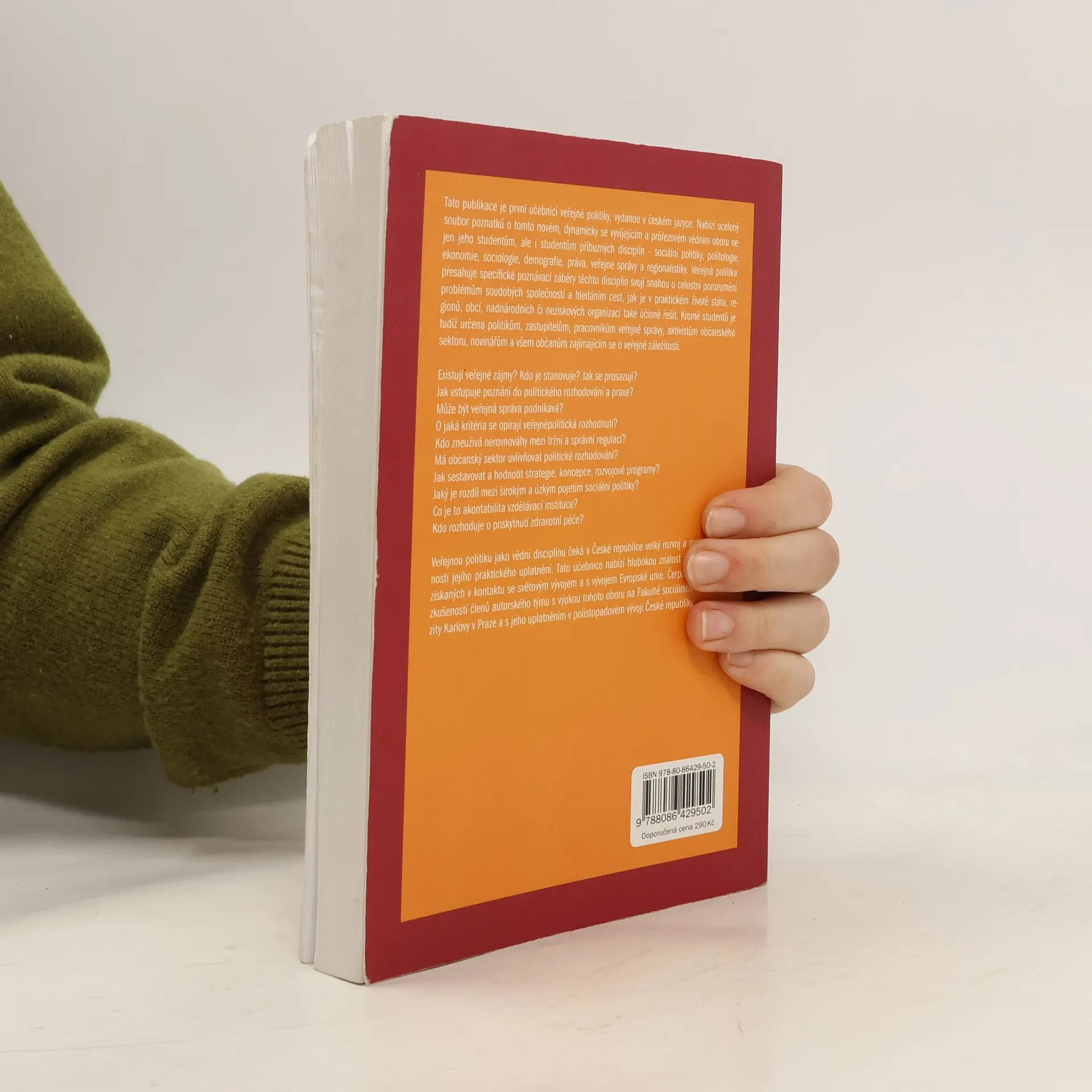 Tato publikace je první učebnicí veřejné politiky, vydanou v českém jazyce. Nabízí ucelený soubor poznatků o tomto novém, dynamicky se vyvíjejícím a průřezovém vědním oboru nejen jeho studentům, ale i studentům příbuzných disciplín – sociální politiky, politologie, ekonomie, sociologie, demografie, práva, veřejné správy a regionalistiky. Veřejná politika přesahuje specifické poznávací záběry těchto disciplín svojí snahou o celostní porozumění problémům soudobých společností a hledáním cest, jak je v praktickém životě státu, regionů, obcí, nadnárodních či neziskových organizací také účinně řešit. Kromě studentů je kniha určena politikům, zastupitelům, pracovníkům veřejné správy, aktivistům občanského sektoru, novinářům a všem občanům zajímajícím se o veřejné záležitosti. Zpracováno na základě českého překladu originální anglické publikace Public Policy in Central and Eastern Europe. První české vydání r. 2005, dotisk r. 2010 pod ISBN 978-80-86429-50-2.