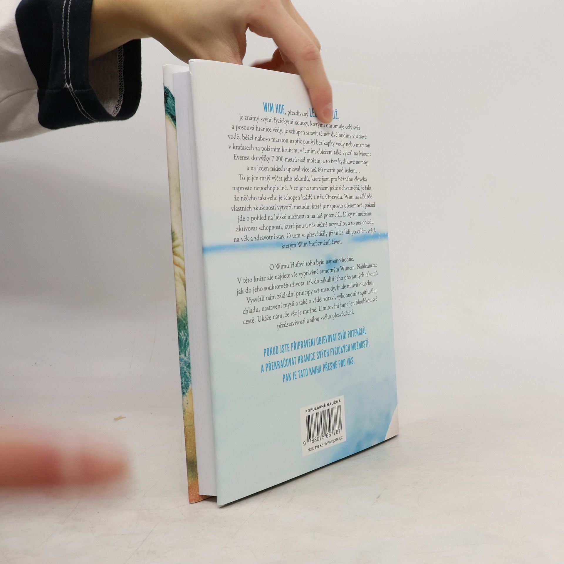 Jediná autorizovaná kniha Wima Hofa představuje převratnou metodu, která nám umožňuje využít náš fyzický i duševní potenciál. Wim Hof, známý jako Ledový muž, ohromuje svět svými neuvěřitelnými výkony, jako je strávení téměř dvou hodin v ledové vodě, běhání maratonů bez vody a výstupy na Mount Everest bez kyslíku. Tyto rekordy mohou vypadat nepochopitelně, ale Hof tvrdí, že podobných schopností může dosáhnout každý z nás. Na základě svých zkušeností vytvořil metodu, která mění pohled na lidské možnosti a aktivuje nevyužité schopnosti, bez ohledu na věk či zdravotní stav. Tisíce lidí po celém světě již pocítily pozitivní změny ve svém životě díky této metodě. Kniha nabízí osobní pohled na Hofův život a zákulisí jeho rekordů. Vysvětluje základní principy jeho metody, včetně technik dýchání, práce s chladem, nastavení mysli a souvislostí se zdravím a spirituálním rozvojem. Hof ukazuje, že naše limity jsou určeny pouze hloubkou naší představivosti a silou přesvědčení. Pokud jste připraveni objevovat svůj potenciál a překonávat fyzické hranice, tato kniha je pro vás. „Tato metoda je jednoduchá, přístupná a vědecky podložená. Může ji praktikovat kdokoli, bez dogmat, pouze s přijetím a svobodou.“