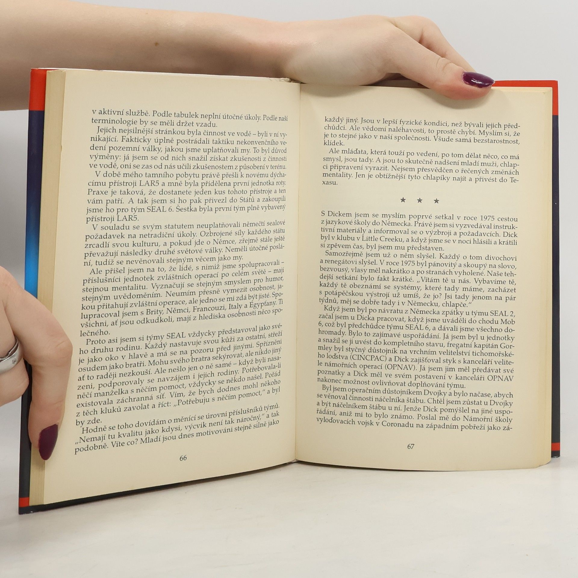 Richard Marcinko v této knize svolává válečníky, kteří sloužili po jeho boku, aby vyprávěli své vlastní příběhy o tom, jak bojovali ve všech končinách světa. Skuteční představitelé románových hrdinů líčí svou cestu z civilu do výcvikového kurzu, své první zážitky uprostřed palby a vzpomínají, jak se ze začátečníků změnili v ostřílené veterány a profesionální válečníky, kteří se nikdy nevzdávají.