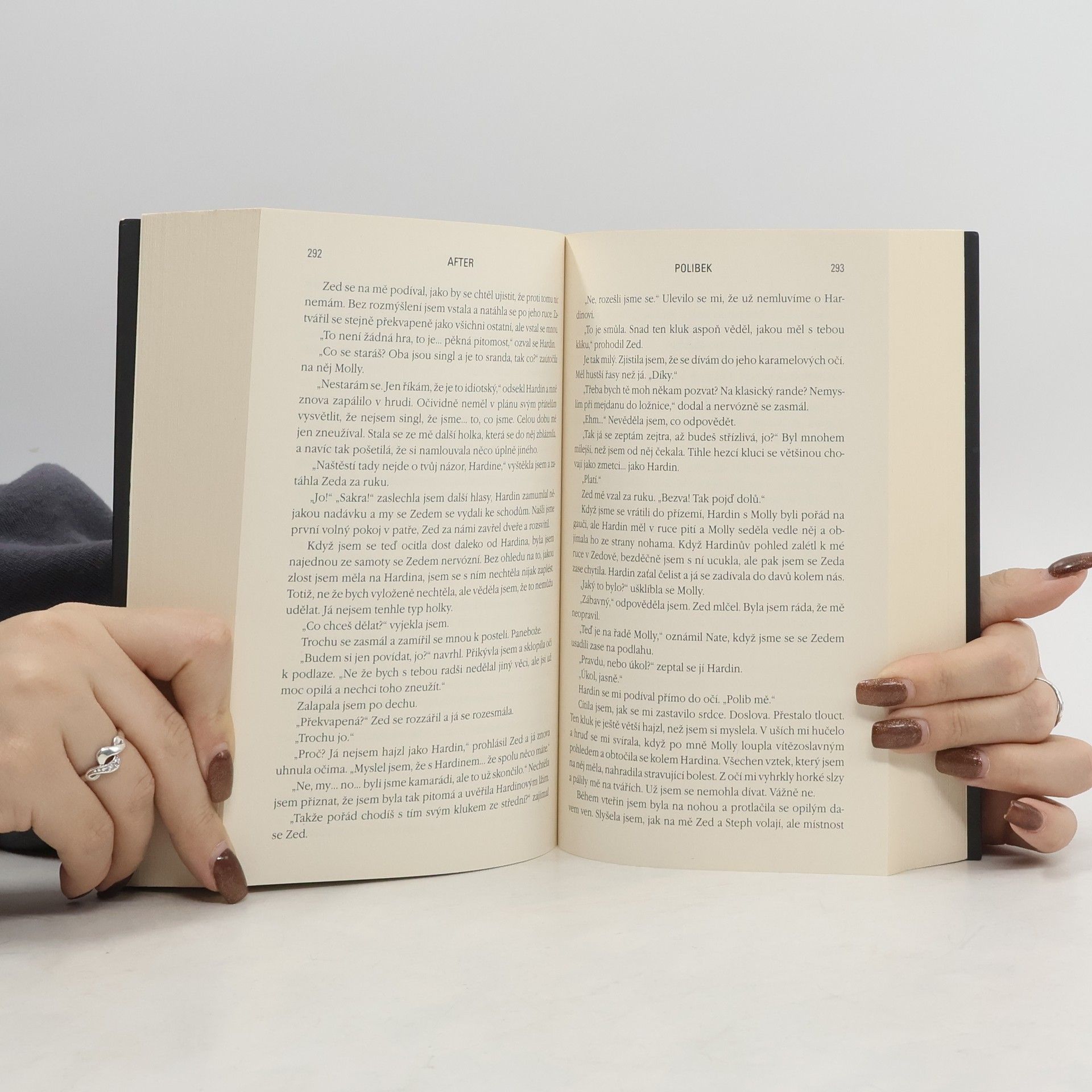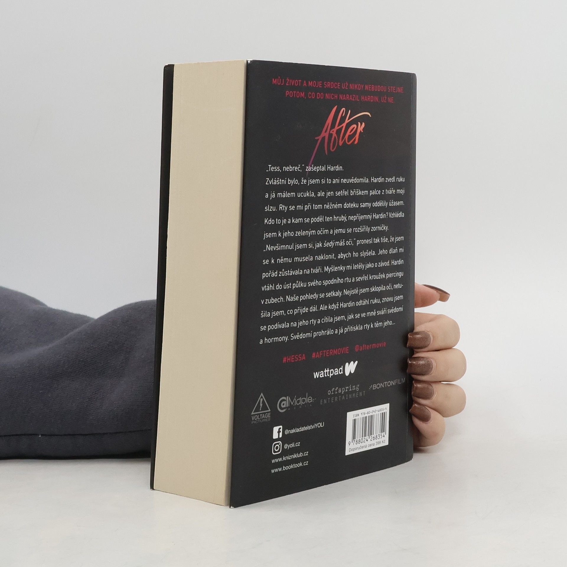 … můj život a moje srdce už nikdy nebudou stejné. Potom, co do nich narazil Hardin, už ne. Tessa má všechno – žije v láskyplném prostředí s chápající matkou a má kluka svých snů, laskavého, milého, kterého jí závidí všechny kamarádky. Lepšího už si ani nemohla přát. Tessin pohodový život ale v okamžiku změní jediné setkání. Hardin je pořádně drzý kluk, s nepřeslechnutelným, nafoukaným britským akcentem, sexy rozcuchem, tetováním a piercingem ve rtu. Tessa si nemůže pomoct – Hardin je zkrátka jiný než ostatní kluci, které poznala… A to po všech stránkách – dovede být i pěkně krutý. Neměla by ho spíš nenávidět? Neměla by jím Tessa pohrdat? Jak to, že se od něj nemůže odpoutat? Nedokáže to – i přes všechny jeho chyby a prohřešky. Intenzivní vášnivou blízkost střídají neustálá Hardinova zmizení a výbuchy vzteku. Může takhle vůbec vypadat láska? Tessa sama nevěří, že by takový vztah mohl fungovat. Ale… jde odolat jeho polibku? 3. vydání