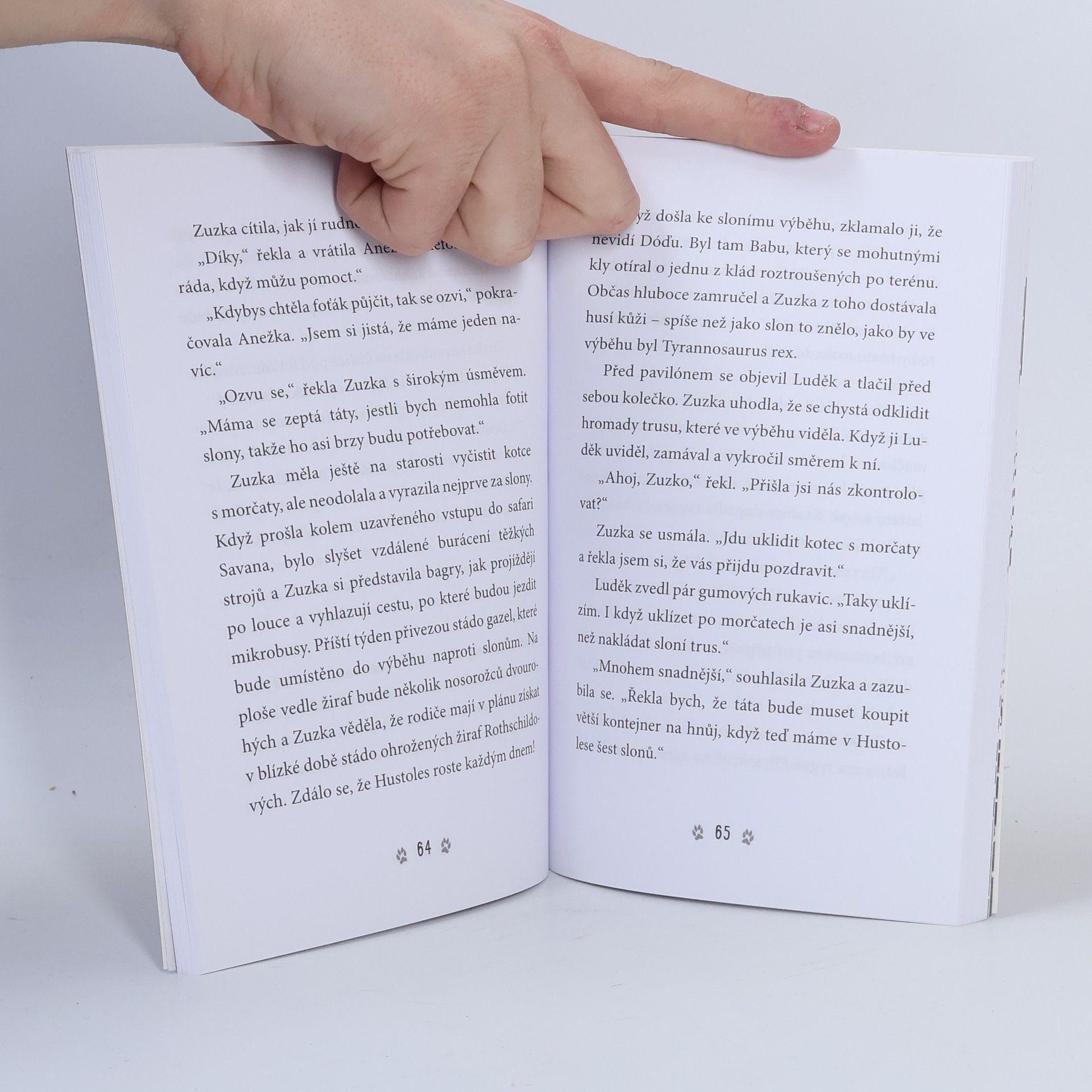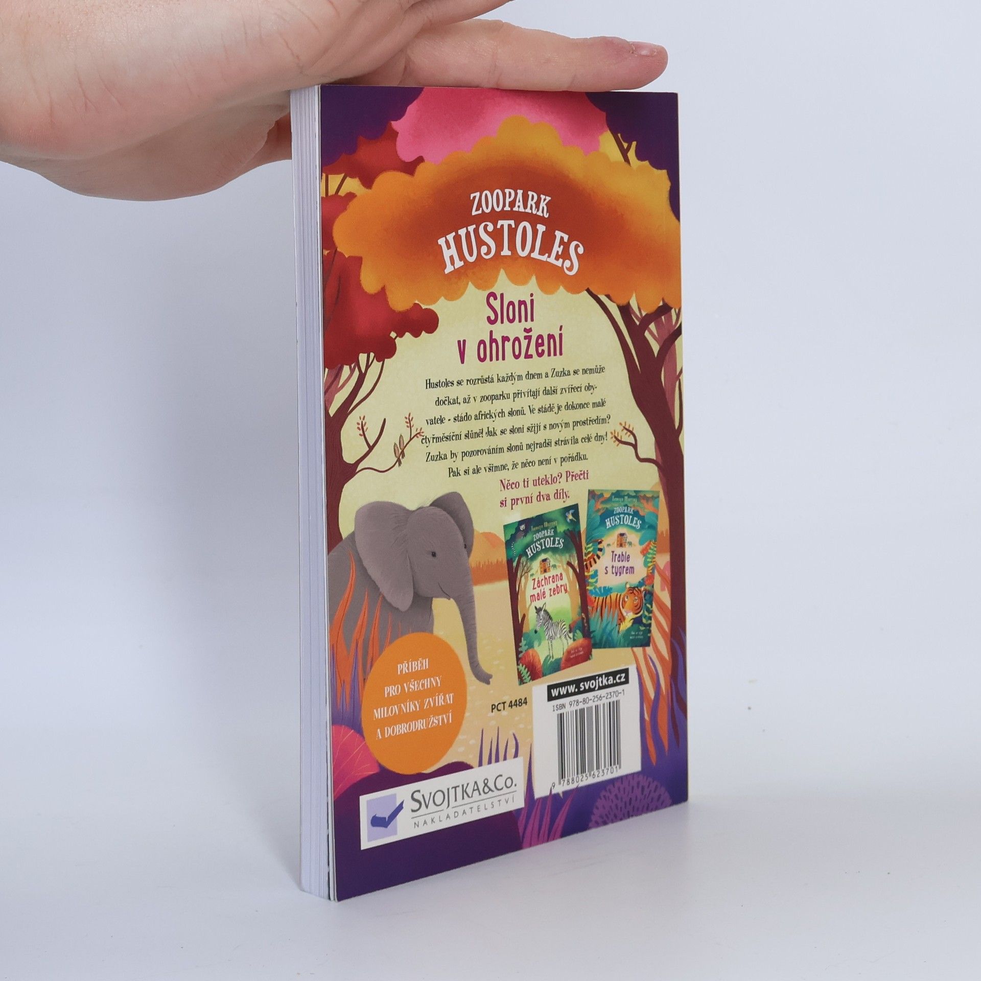 Kdo četl první dvě knihy o Zuzce, která bydlí se svými rodiči a mladším bráškou v zooparku, jistě se nemůže dočkat pokračování. Závěrečný díl trilogie nás opět zavede do výběhů mezi zvířata žijící v Hustolese. Zuzčini rodiče se tentokrát ujmou šestičlenného stáda slonů, které musí být narychlo přemístěno z jiné zoologické zahrady. Zuzka je nadšená zejména z nejmladšího člena sloního stáda. Čtyřměsíční slůně je asi tím nejroztomilejším mládětem, které kdy Zuzka viděla, a všichni jsou z malého slůněte naprosto okouzleni. A tak Zuzka sleduje, jak se sloni zabydlují, jakou mají povahu a jak se k sobě navzájem chovají. Rodiče také Zuzce svěří zvláštní úkol: dostane fotoaparát, aby mohla zvířata v zooparku fotit, a o ty opravdu povedené fotky se pak může podělit s návštěvníky a fanoušky Hustolesa. Co všechno se Zuzce podaří vyfotit? Díky fotkám také odhalí, že se mezi slony něco děje. Vůdčí samice Sarana přestává jíst a izoluje se od stáda, čímž stádo velmi trpí. Podaří se ošetřovatelům zjistit, co Saranu trápí, a odvrátit nebezpečí, které slonici hrozí? Knížky o Hustolese jsou plné příběhů o zvířatech žijících v zooparku a také o lidech, kteří se o ně starají. Vedle poutavého čtení se toho mladý čtenář dozví spoustu o zebrách, tygrech, lvech, gazelách, morčatech, surikatách a dalších zvířecích obyvatelích zooparku Hustoles.