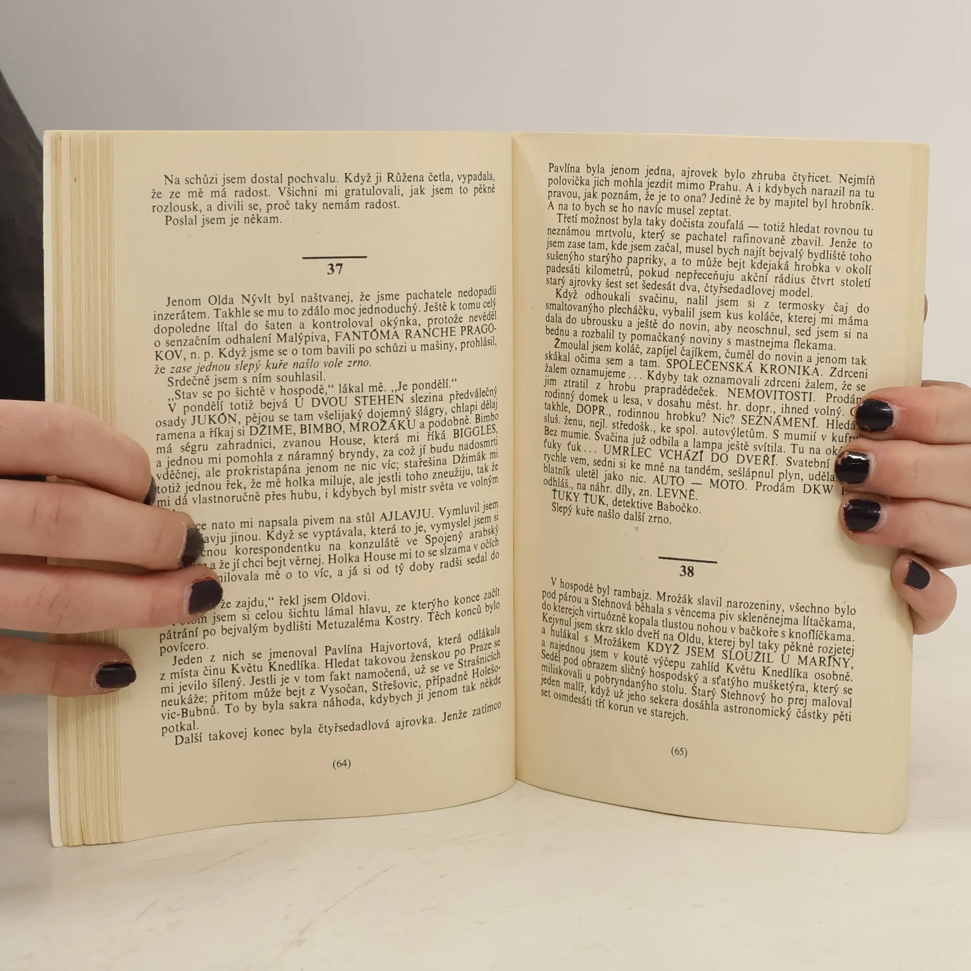 Vydání Čenže a Smrti komára (4. a 5. Finkovka) z osmdesátých let, které vyšlo pod společným názvem Čenž se smrtí. Ukázka: Jak jsem ujížděl, provázelo mě jakýsi vrrr do ztracena, jako kdyby si ze mě ještě k tomu někdo dělal srandu. To se ví, byla to nějaká motorka na druhý straně planýrky, za roštím, který zakrejvalo výhled na ulici za dolíkem. Přistál jsem na podvozek a kalhoty zůstaly celý. Načež jsem ho zahlíd. Seděl opřenej o nasypanej svah, ze kterýho jsem se mu málem zřítil na kokos. „Pane,“ povídám. Chlápek nic. Popolez jsem k němu. ,,Nastydnete,“ zkoušel jsem to. Byl jsem mu volnej. Tak jsem k němu šel a hmát mu na rameno. Neřek zase nic. Vlastně ani nemoh. Byl tvrdej jak Jínův lomnickej suchar. Jako bych popad věšák. Teprve teď vyvrcholil ten den, kdy se dějou věci. A jak! Kam se hrabou šunkafleky! Škrábal jsem se po čtyřech nahoru, abych došel pro esenbáky. Uviděj brejele, ucejtěj Blanku z Valojs a hned si mě tam nechaj.